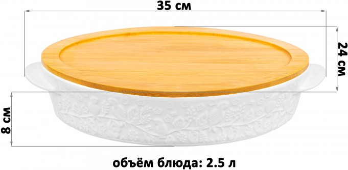 💳 Оплатить за товар можно при получении 🇰🇿 Есть бесплатная доставка по Казахстану от 1 дня 🎁 Копите бонусы с каждой покупки Серия: Птички на ветке Блюдо «Птички на ветке» от Elan Gallery предназначено для запекания и сервировки горячих блюд. Размер ёмкости — 35×24×8 см, объём — 2.5 литра. Внутренний размер блюда — 30×22.5×6.5 см. Выполнено из высококачественного белого фарфора. Он не впитывает цвет продуктов и легко отмывается, благодаря чему надолго сохранит свою белизну. Поверхность изделия украшена рельефным узором в виде лиственных веточек и сидящих на них птичек. Крышка выполнена из натурального бамбука. Глубокая тарелка подходит для выпечки блюд в духовом шкафу и их подачи — вам не потребуется дополнительная сервировочная посуда. Она также послужит в качестве большой салатницы и незаменимым помощником на застольях. Заполните её любимыми закусками — сырной и мясной нарезкой, свежими овощами и фруктами. Эстетично подайте выпечку и сладости — конфеты, пирожные, пирожки, кусочки торта или домашнего пирога. Деревянная крышка может выполнять функцию подставки благодаря углублению, соответствующему размеру дна блюда. Это поможет защитить поверхности от воздействия высоких температур. |