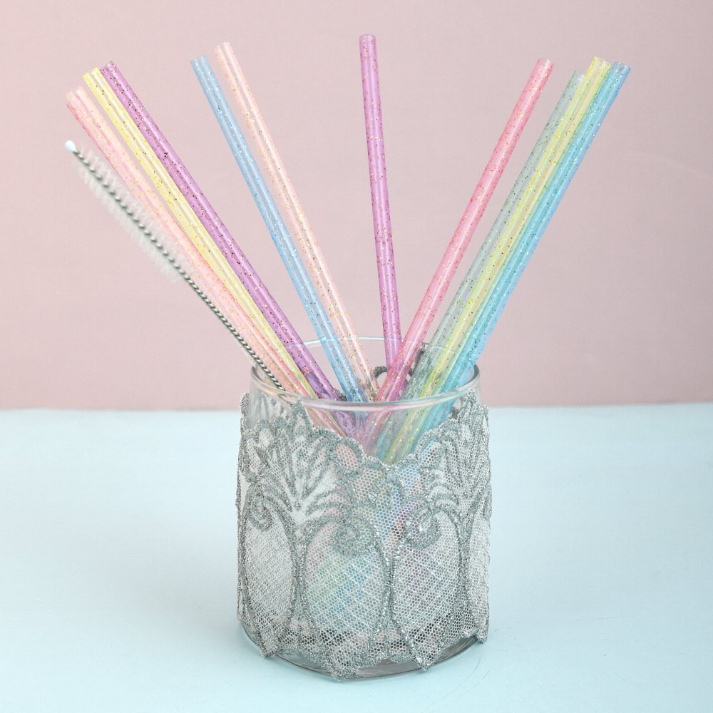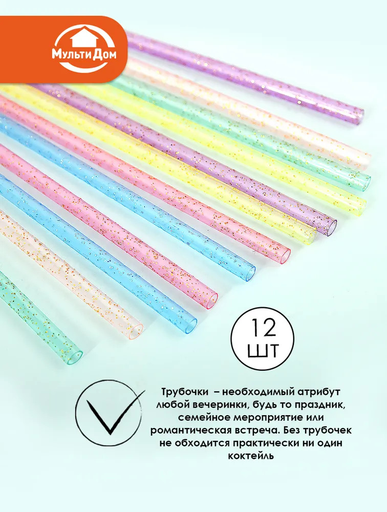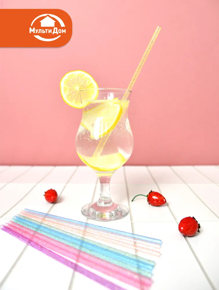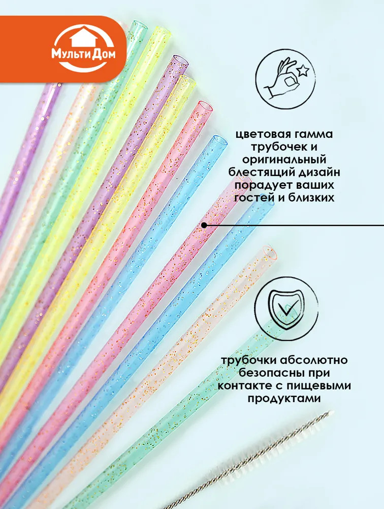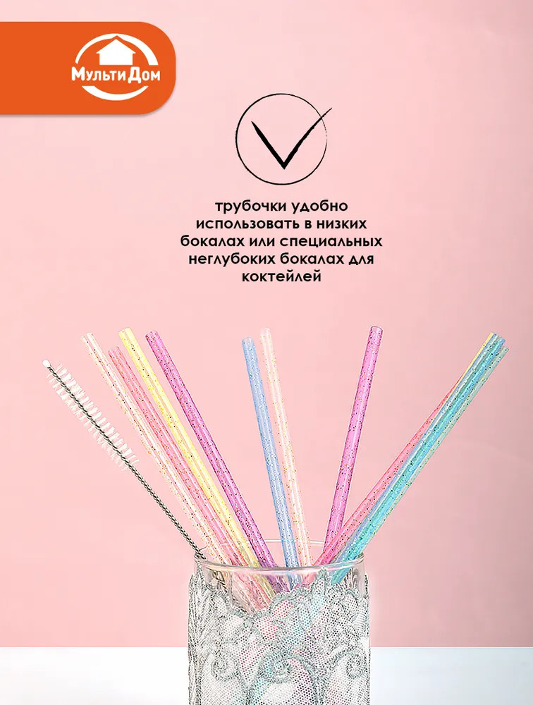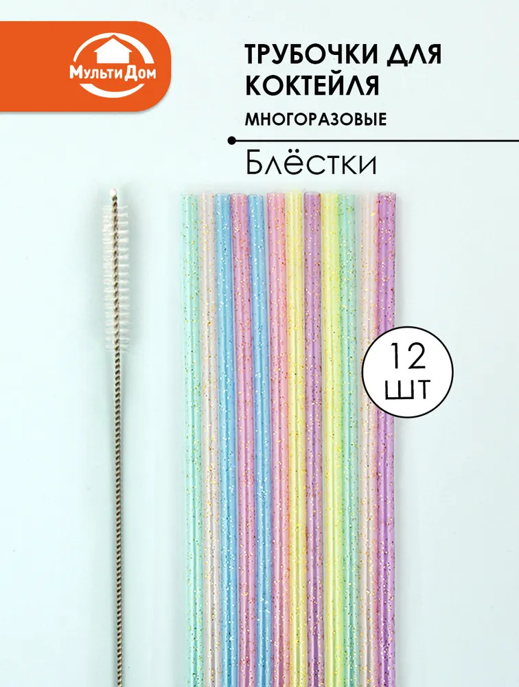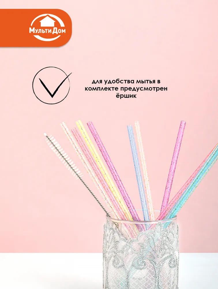 Мультидом Трейдинг Набор трубочек для коктейлей многоразовых с ершиком «Блестки»-20% +38