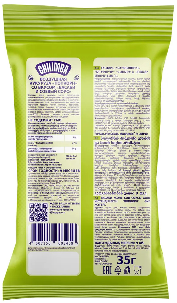 Chilimba Попкорн «Васаби с соевым соусом»