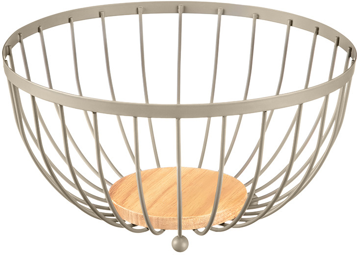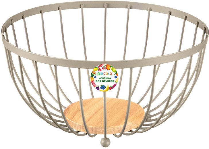 Корзинка для фруктов «Мокко» от El Casa предназначена для красивой подачи к столу разнообразных угощений. Размер изделия — 25×25×13 см, диаметр бамбукового дна — 10 см. Выполнена из металла и имеет сетчатую структуру, которая обеспечивает хорошую вентиляцию и поможет сохранить свежесть продуктов. Деревянное дно представляет собой стильный акцент, гармонично сочетающийся со светлым оттенком металлического корпуса. Благодаря минималистичному дизайну и лаконичному цвету корзина гармонично впишется в любой интерьер, что делает её универсальным аксессуаром для кухни, столовой и гостиной. Используйте её для хранения и сервировки фруктов и овощей, заполните выпечкой, хлебом или сладостями. Подайте к столу свои любимые закуски и удивите гостей эстетичной сервировкой!