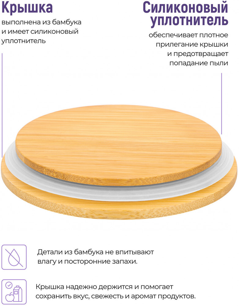 Баночка впишется в любой интерьер и позволит организовать хранение даже на открытых полках. Не рекомендуется применять абразивные моющие средства. Без крышки подходит для использования в микроволновой печи и посудомоечной машине. Бамбук нельзя замачивать! Поставляется в дизайнерской картонной коробке — благодаря ей вам не потребуется дополнительная подарочная упаковка. Это идеальный подарок для хозяйки, ценящей не только практичность, но и стиль. В ассортименте бренда Элан Галерея представлены банки для хранения на любой вкус. Соберите целый набор для эстетичного хранения продуктов на вашей кухне!