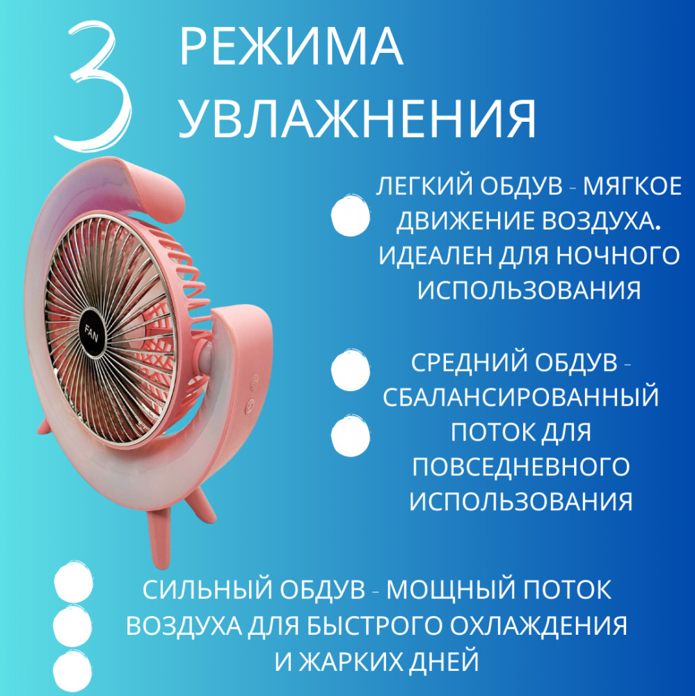 В данный момент этот товар отсутствует в продаже. Возможно, у нас найдется аналогичный или похожий товар здесь. Настольный мини вентилятор для дома — ваш идеальный спутник для прохлады в любом уголке! Этот компактный и стильный помощник станет настоящим спасением в вашем уютном пространстве. Он легко впишется в любой интерьер, будь то рабочий стол, офис, спальня или гостиная. Беспроводное использование: работая от аккумулятора, он обеспечивает максимальную гибкость в использовании. Забудьте о запутанных проводах и наслаждайтесь свежестью. Это делает его идеальным для длительных поездок, пикников или просто для использования в разных комнатах вашего дома. Подзарядка осуществляется легко и быстро через USB. Выбирайте подходящую скорость вентиляции из трех доступных режимов, чтобы создать идеальные условия для себя.
