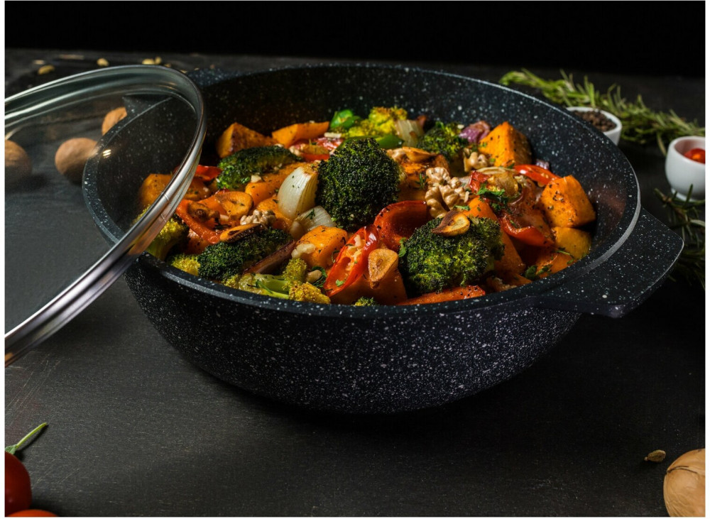 НМП Жаровня со стеклянной крышкой «Черный гранит»