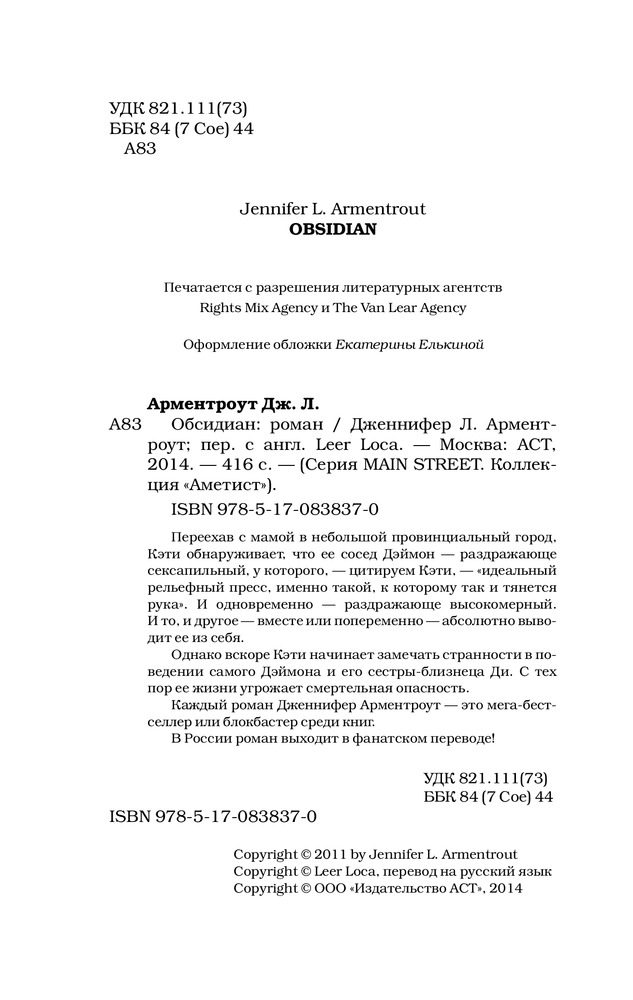 ОбсидианВ данный момент этот товар отсутствует в продаже. Возможно, у нас найдется аналогичный или похожий товар здесь. Серия: Main Street. Коллекция "Аметист" Переехав с мамой в небольшой провинциальный город, Кэти обнаруживает, что ее сосед Дэймон - раздражающе сексапильный, у которого, - цитируем Кэти, - "идеальный рельефный пресс, именно такой, к которому так и тянется рука". И одновременно - раздражающе высокомерный. И то, и другое - вместе или попеременно - абсолютно выводит ее из себя. |
