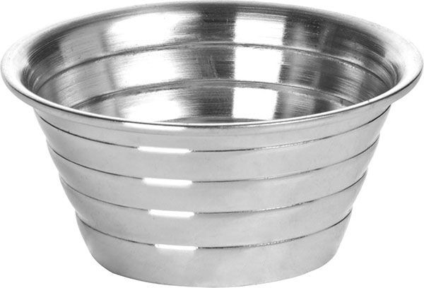 Соусник из металла имеет небольшой размер. Он выполнен из нержавеющей стали, поэтому отличается простотой в уходе и долговечностью. Товар имеет форму расширенной кверху пиалы, на стенках есть мелкие полоски, которые добавляют изделию оригинальность.