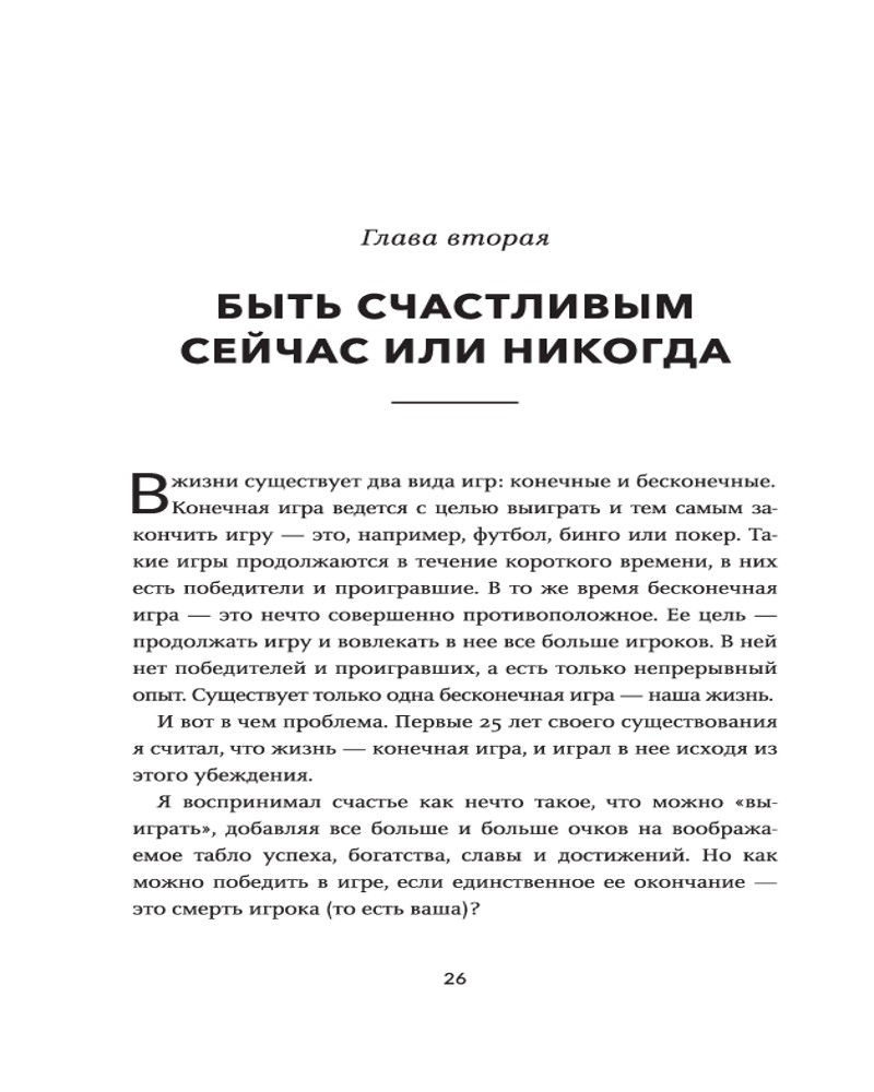 💳 Оплатить за товар можно при получении 🇰🇿 Есть бесплатная доставка по Казахстану от 1 дня 🎁 Копите бонусы с каждой покупки Серия: Психология Как часто мы теряем себя в ходе достижения каких-то эфемерных целей! Мы гонимся не за тем, задаем не те вопросы и засоряем свой разум не теми мыслями. Пора остановиться, задуматься и переосмыслить фундамент социального проекта, по которому строится вся наша жизнь. Будучи 18-летним, чернокожим, безработным, одиноким, неуверенным в себе, бросившим университет парнем из обанкротившейся семьи, я написал в своем дневнике, что хочу к 25 годам стать «счастливым и сексуальным миллионером». В 25 лет я уже был мультимиллионером, построив бизнес стоимостью более 300 миллионов долларов. По иронии судьбы, достигнув всего, о чем мечтал, я понял, что ошибался почти во всем... Мир обманывал меня. Мир лгал мне о том, как достичь самореализации, любви и успеха, почему эти вещи имеют значение и что на самом деле они означают. |