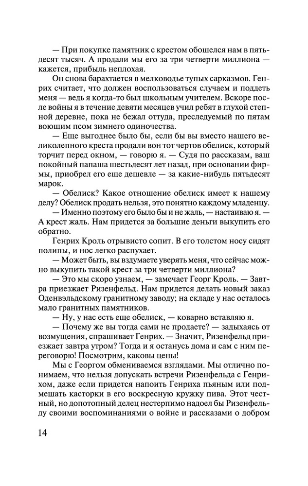 Настоящий шедевр! Очень интересная и захватывающая книга. Действительно стоящая книга. После прочтения которой, получаешь столько эмоций и желаешь прочитать остальные книги Ремарка.