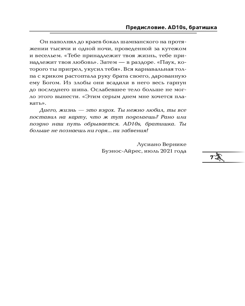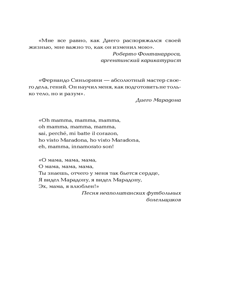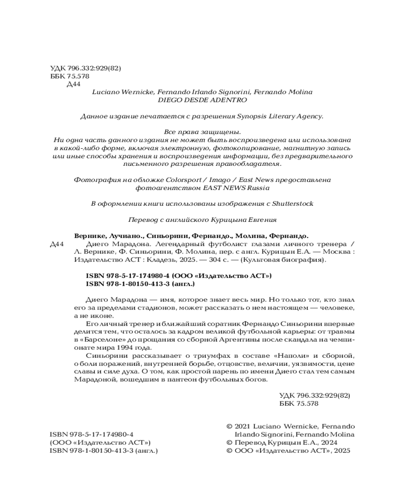 💳 Оплатить за товар можно при получении 🇰🇿 Есть бесплатная доставка по Казахстану от 1 дня 🎁 Копите бонусы с каждой покупки Серия: Культовая биография Диего Марадона — имя, которое знает весь мир. Но только тот, кто знал его за пределами стадионов, может рассказать о нем настоящем — человеке, а не иконе. Его личный тренер и ближайший соратник Фернандо Синьорини впервые делится тем, что осталось за кадром великой футбольной карьеры: от травмы в «Барселоне» до прощания со сборной Аргентины после скандала на чемпионате мира 1994 года. Синьорини рассказывает о триумфах в составе «Наполи» и сборной, о боли поражений, внутренней борьбе, отцовстве, величии, уязвимости, цене славы и силе духа. О том, как простой парень по имени Диего стал тем самым Марадоной, вошедшим в пантеон футбольных богов. |