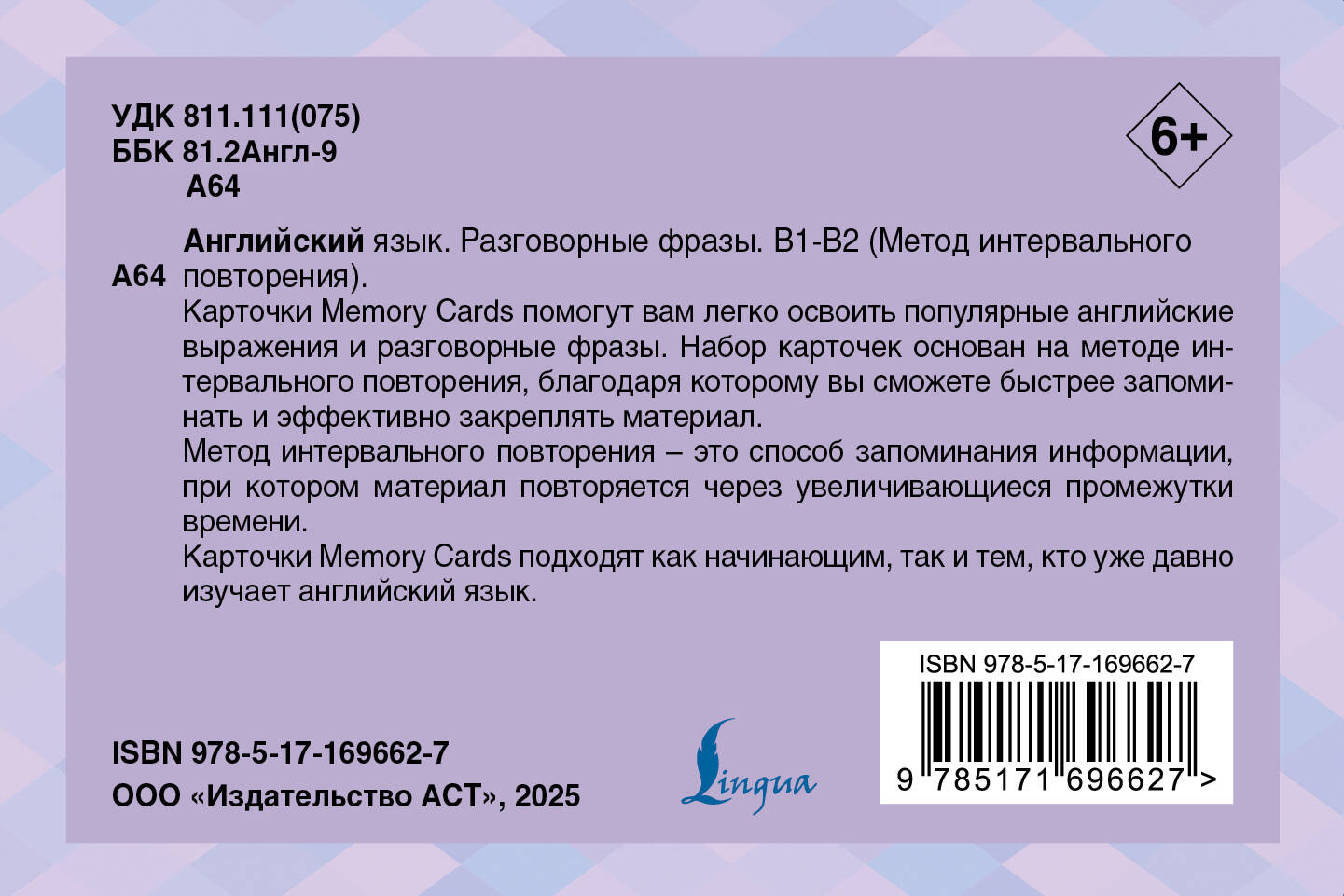 💳 Оплатить за товар можно при получении 🇰🇿 Есть бесплатная доставка по Казахстану от 1 дня 🎁 Копите бонусы с каждой покупки Серия: Memory Cards Карточки Memory Cards помогут вам легко освоить популярные английские выражения и разговорные фразы. Набор карточек основан на методе интервального повторения, благодаря которому вы сможете быстрее запоминать и эффективно закреплять материал. Метод интервального повторения — это способ запоминания информации, при котором материал повторяется через увеличивающиеся промежутки времени. Карточки Memory Cards подходят как начинающим, так и тем, кто уже давно изучает английский язык. |