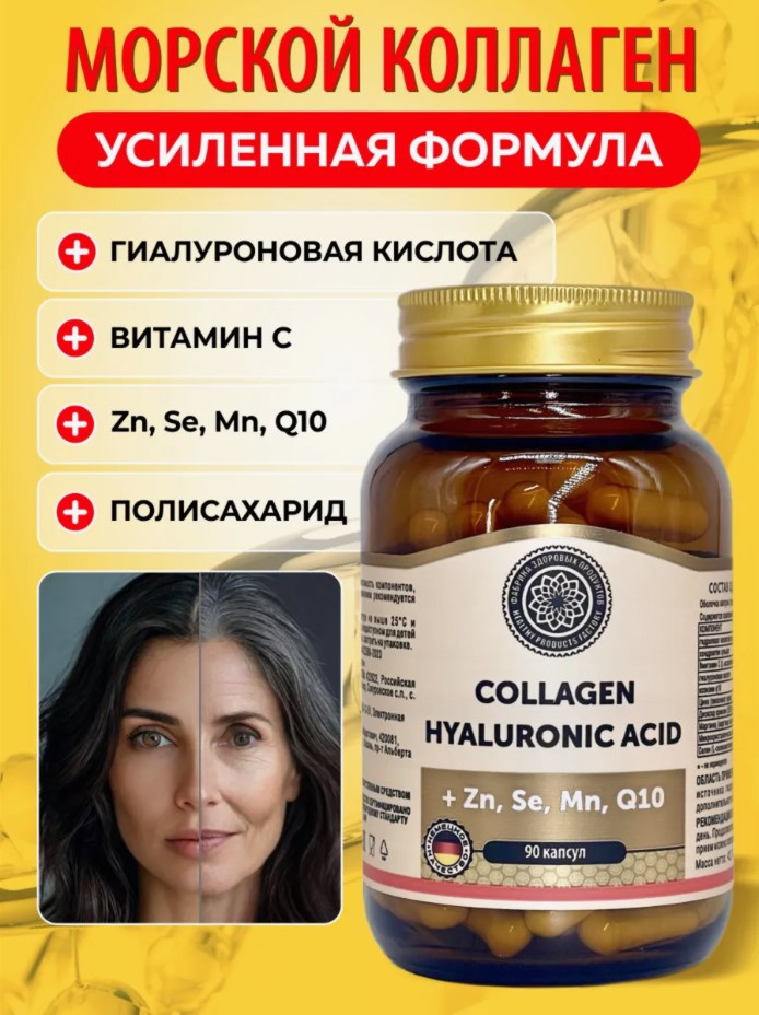 Фабрика Здоровых Продуктов Коллаген морской в капсулах «Collagen Hyaluronic Acid»-28% +63