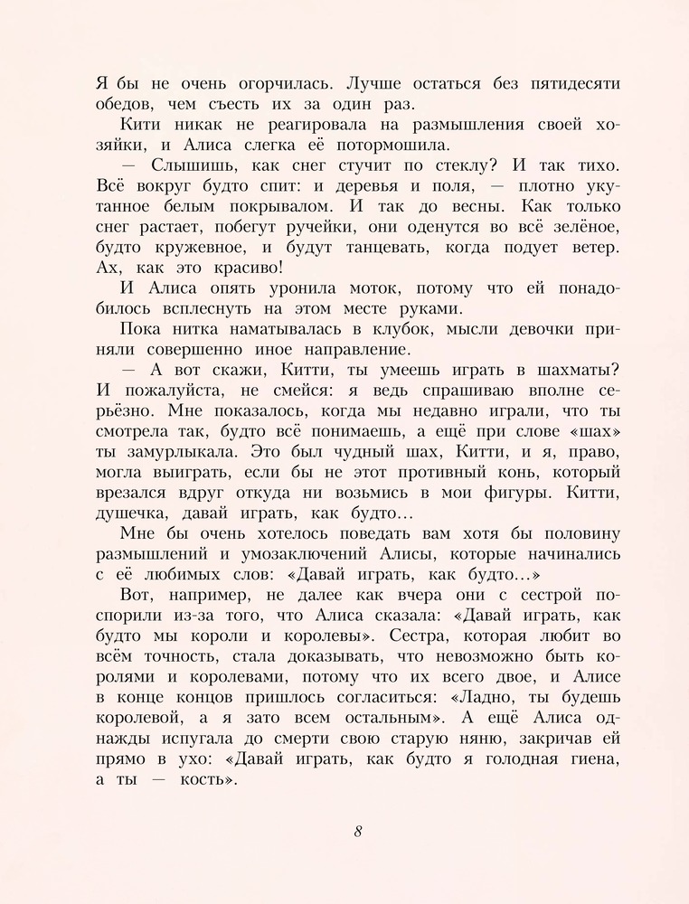 Эта серия книг выше всяких похвал! Долго выбирала для дочки издание для первого ознакомления с произведениями, остановилась на этой серии именно из-за большого количества сказочных иллюстраций на бумаге не белого цвета, а нежно-бежевого цвета. А обложка такая приятная на ощупь, как из бархата, но уж очень пачкается, поэтому сразу надели обложки. Купила все четыре книги (двух Алис, Питер Пэна и Волшебника из страны Оз) - на тот момент в ассортименте были ещё только четыре книги - и очень довольна. От меня и от дочки спасибо!