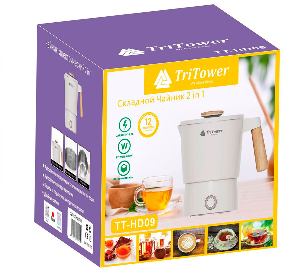 TriTower Чайник электрический складной 2 в 1 для путешествий TriTower HD-09+200
