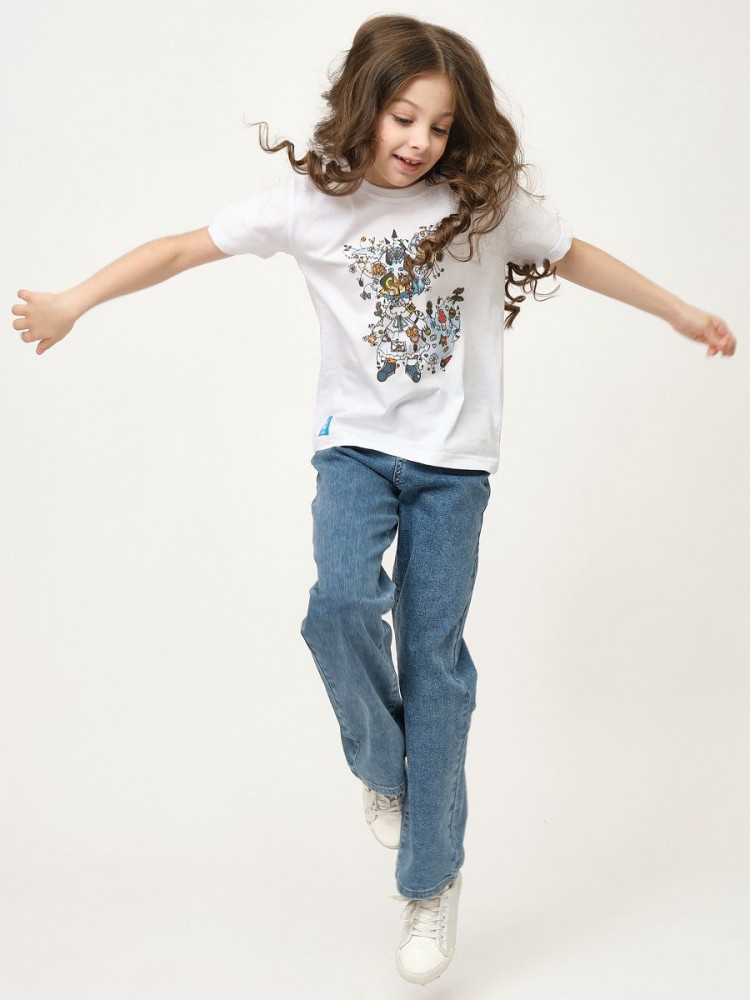 Футболка — идеальный выбор для активных и стильных детей. Изготовлена из мягкого, дышащего материала, она обеспечивает комфорт на весь день, не сковывает движений и подходит даже для чувствительной кожи. Прочная ткань и качественный пошив выдерживают множество стирок, сохраняя форму и насыщенность оттенков. Эта футболка — универсальный элемент детского гардероба, подходящий для игр, прогулок и повседневной носки.
