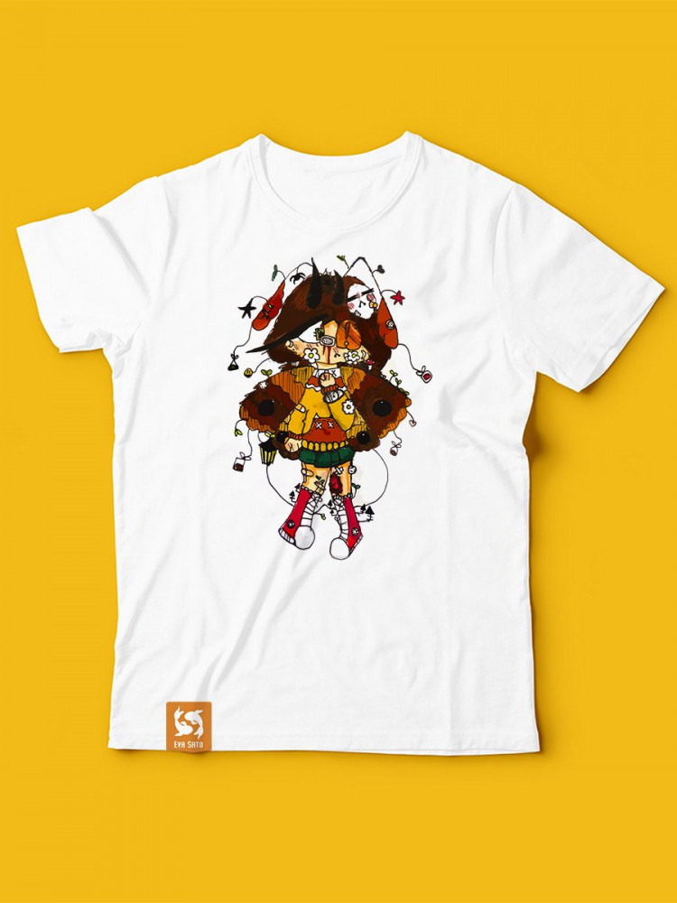 | Молодой бренд детской и подростковой одежды с авторскими принтами по рисункам 10-летней художницы. В её работах сплетаются комиксы, культура аниме, поп-арт, восточные мифы, коллажная техника. Главные герои творчества Евы — фантастические девочки, которые обращаются в лисиц, мотыльков, грибы. Они своенравны и талантливы, каждая обладает уникальными характеристиками, которые подробно описываются автором. |