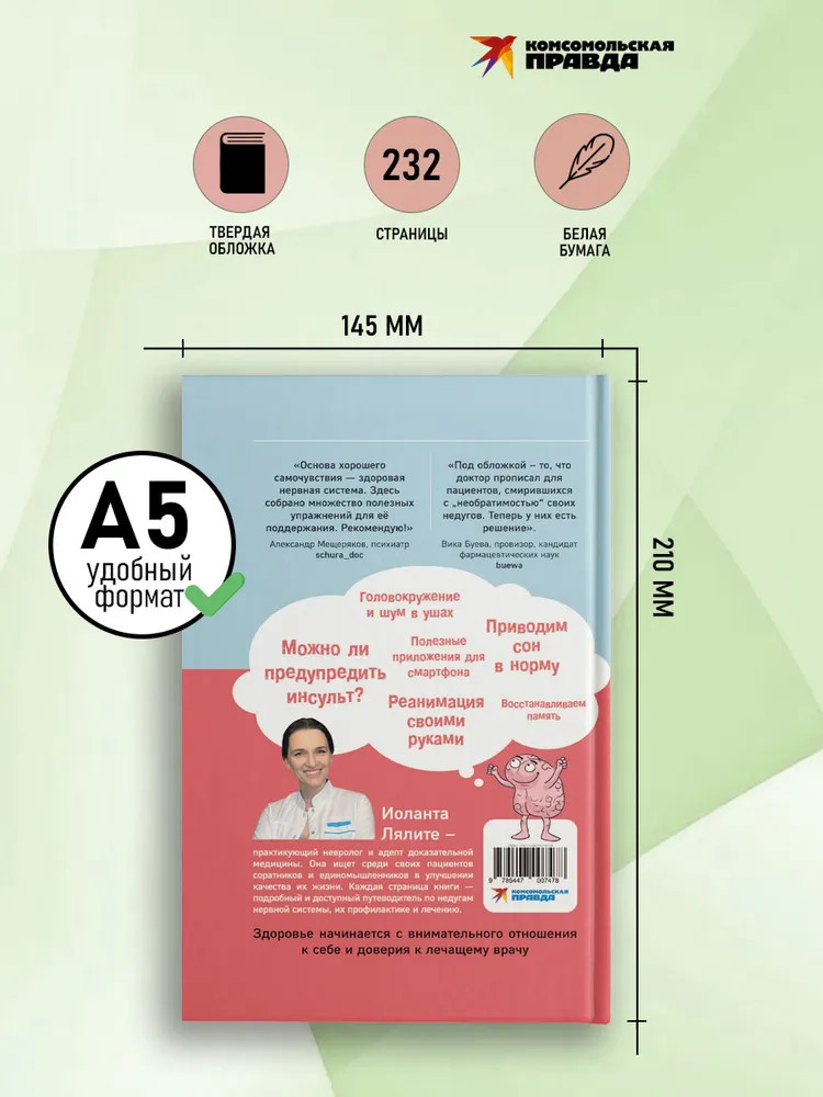 💳 Оплатить за товар можно при получении 🇰🇿 Есть бесплатная доставка по Казахстану от 1 дня 🎁 Копите бонусы с каждой покупки Серия: Все грани здоровья Почему кружится голова? Откуда берется шум в ушах? Можно ли предотвратить внезапный инсульт? Как победить изнуряющую бессонницу? Правда ли, что хорошую память в любом возрасте можно натренировать, а игры для смартфона из врагов сделать друзьями, которые помогут сохранить когнитивные способности? Какие анализы и диагностика действительно подскажут возможные проблемы, и главное — как человеку отличить безобидные симптомы «проблем с мозгом» от опасных? Ответы на эти и многие другие тревожащие вопросы — в книге практикующего невролога Иоланты Лялите. Доктор — сторонник доказательной медицины и делающий ставку на проверенные методы, например, вестибулярную гимнастику и когнитивно — поведенческую терапию, и помогающий сотням пациентов улучшить качество жизни. Книга станет надежным помощником каждому, у кого есть мозг. |