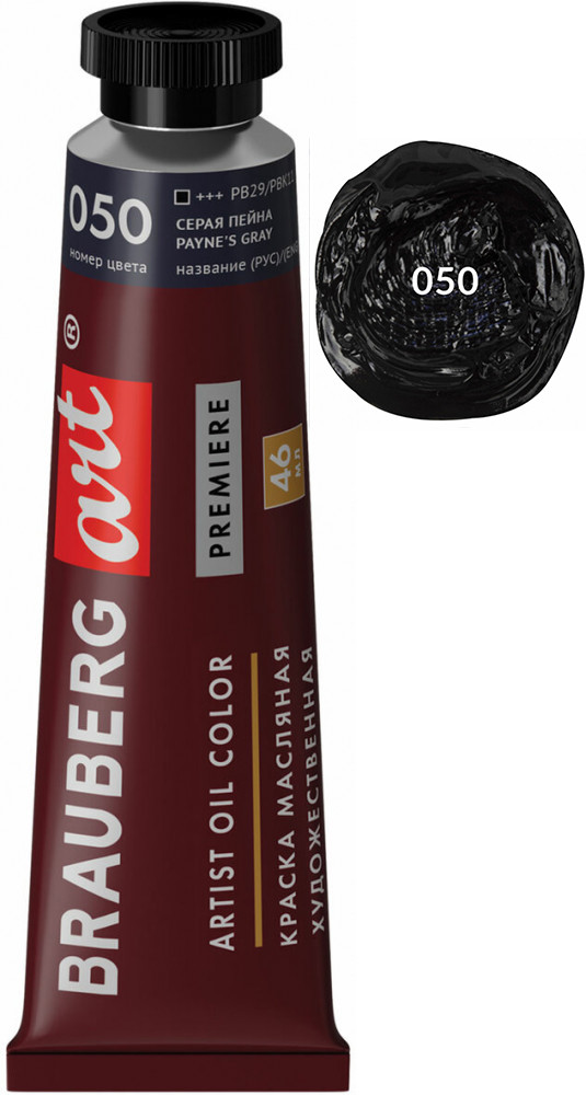 Brauberg Краска масляная художественная, цвет 050 серая пейна