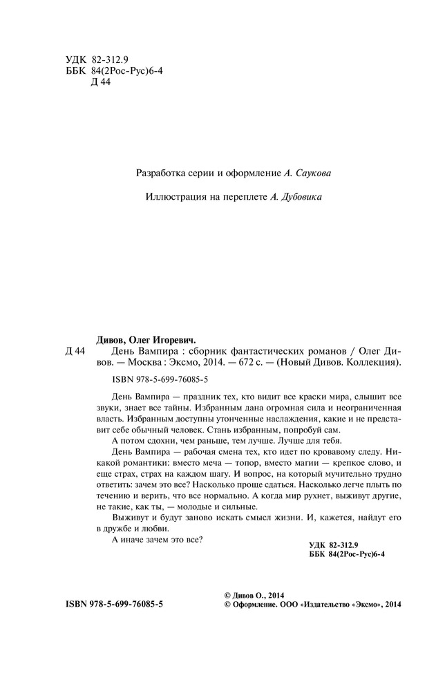 Друг, которому я приобрела эту книгу был немного ошарашен. У него были книги Дивова, но про вампиров он читал впервые. Понравилось.
