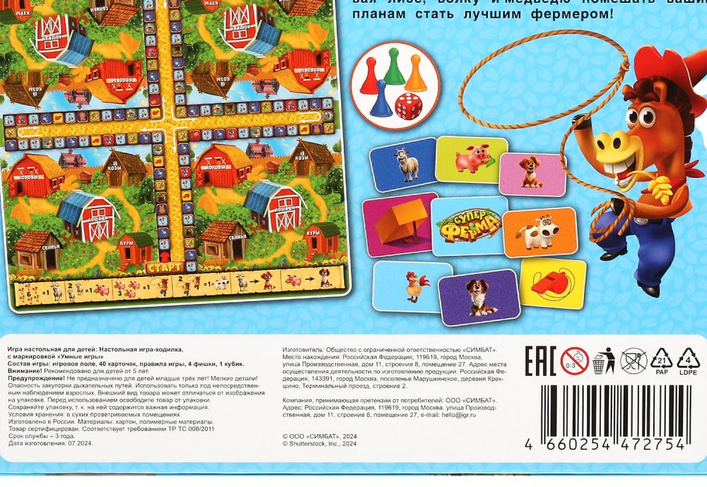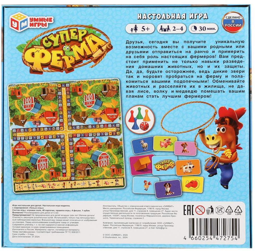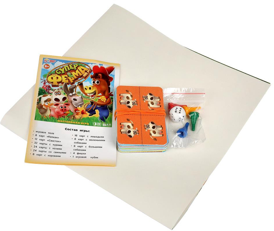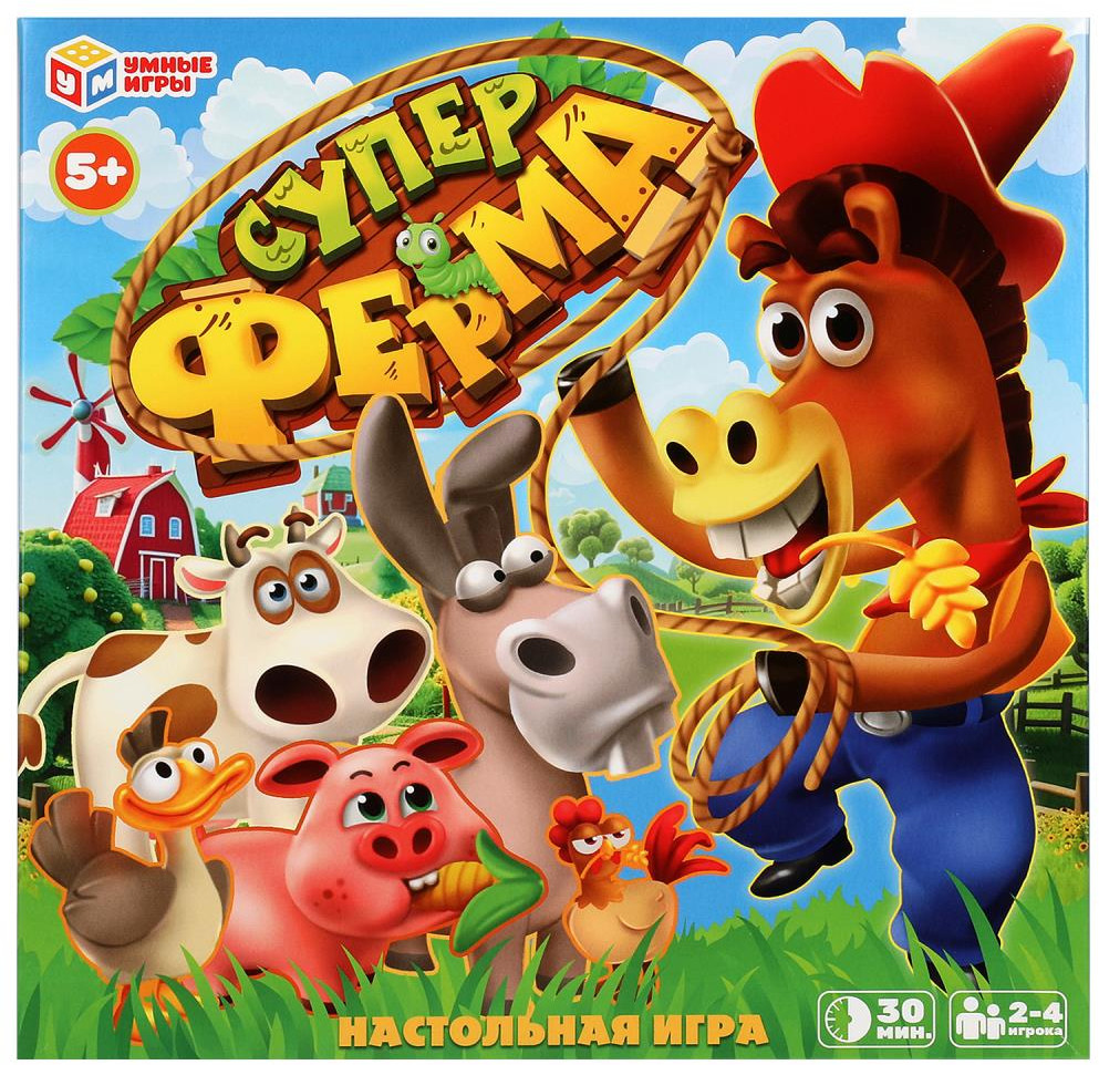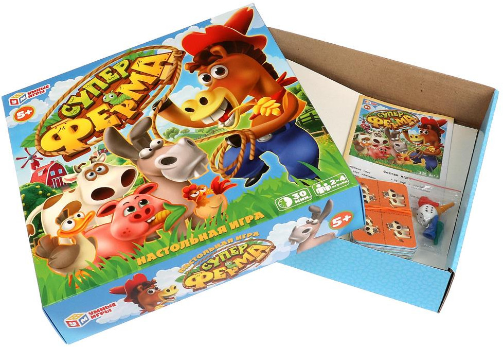 Умные игры Игра настольная «Супер ферма»В данный момент этот товар отсутствует в продаже. Возможно, у нас найдется аналогичный или похожий товар здесь. Друзья, сегодня вы получите уникальную возможность вместе с вашими родными или друзьями отправиться на ранчо и примерить на себя роль настоящих фермеров! Вам предстоит применить не только навыки разведения домашних животных, но и их защиты. Да, да, будьте осторожнее, ведь дикие звери так и норовят пробраться на ферму и полакомиться вашими подопечными! Обменивайте |
