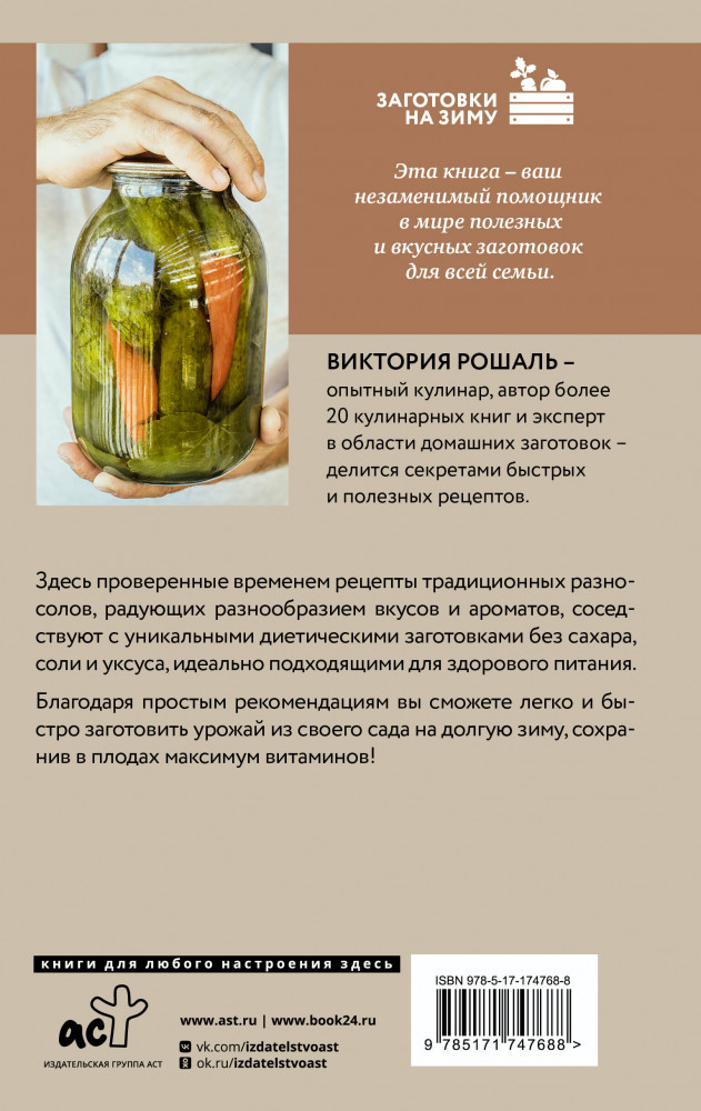 💳 Оплатить за товар можно при получении 🇰🇿 Есть бесплатная доставка по Казахстану от 1 дня 🎁 Копите бонусы с каждой покупки Серия: Заготовки на зиму Здесь проверенные временем рецепты традиционных разносолов, радующих разнообразием вкусов и ароматов, соседствуют с уникальными диетическими заготовками без сахара, соли и уксуса, идеально подходящими для здорового питания. Благодаря простым рекомендациям вы сможете легко и быстро заготовить урожай из своего сада на долгую зиму, сохранив в плодах максимум витаминов! |