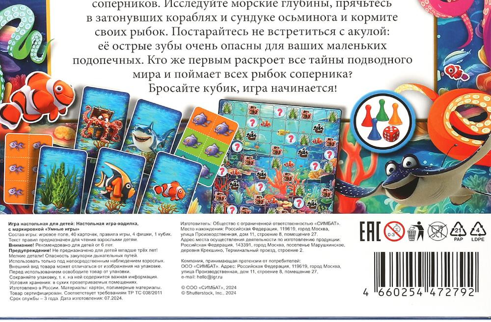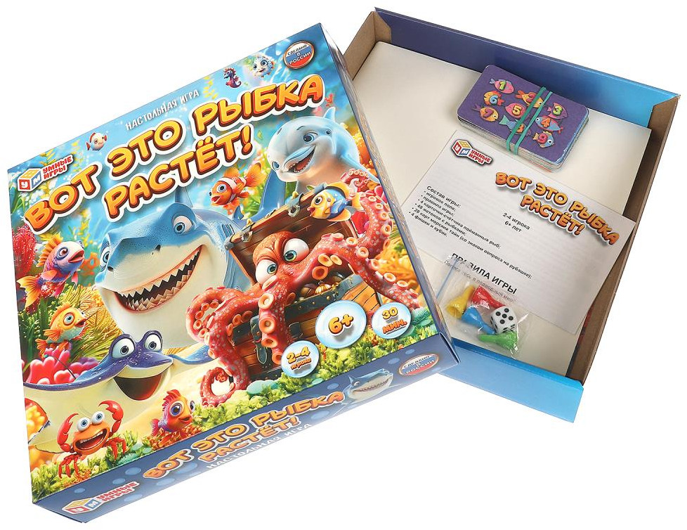 Умные игры Игра настольная «Вот это рыбка растёт!»В данный момент этот товар отсутствует в продаже. Возможно, у нас найдется аналогичный или похожий товар здесь. В настольной игре «Вот это рыбка растёт!» вам предстоит выращивать собственных рыбок и ловить рыбок соперников. Исследуйте морские глубины, прячьтесь в затонувших кораблях и сундуке осьминога и кормите своих рыбок. Постарайтесь не встретиться с акулой: её острые зубы очень опасны для ваших маленьких подопечных. Кто же первым раскроет все тайны подводного мира и поймает всех рыбок соперника? Бросайте кубик, игра начинается! |