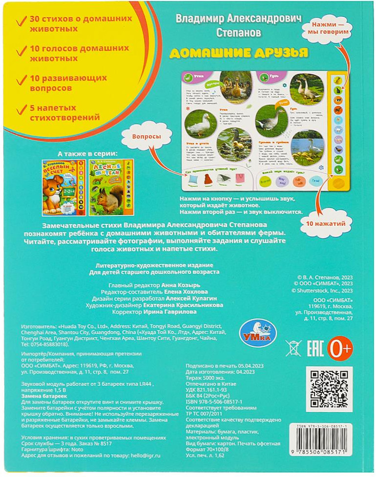 Музыкальная книга «В. А. Степанов. Домашние друзья» ТМ «УМка» станет прекрасным подарком для ребёнка: