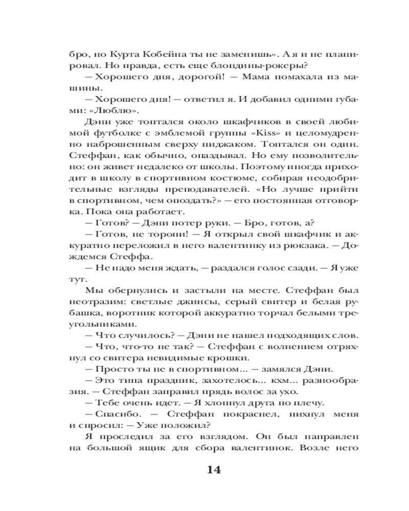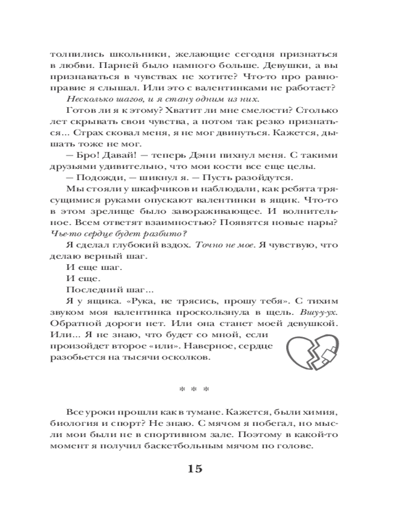 💳 Оплатить за товар можно при получении 🇰🇿 Есть бесплатная доставка по Казахстану от 1 дня 🎁 Копите бонусы с каждой покупки Серия: Любовь в стиле Teen Кай думал, что именно в этот День святого Валентина девушка, в которую он влюблен, ответит взаимностью. Но ее сердце оказалось слишком холодным. Она выбрасывает его валентинку в шкафчик, которым, как считалось, никто не пользуется. Герда только перевелась в новую школу и пока не успела обзавестись друзьями. Неожиданно в своем шкафчике она находит валентинку. Конечно, кто-то из одноклассников решил посмеяться над новенькой. Но, несмотря на сомнения, девушка решает связаться с таинственным незнакомцем, чей ник написан на валентинке... |