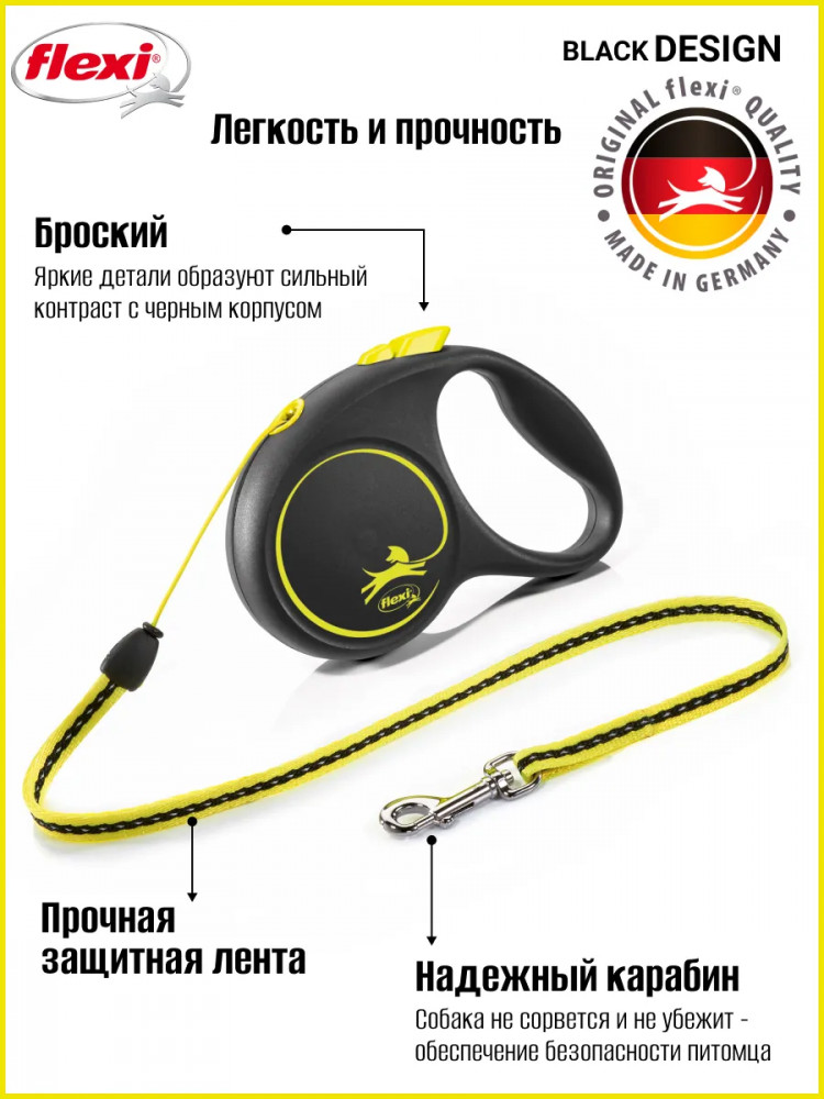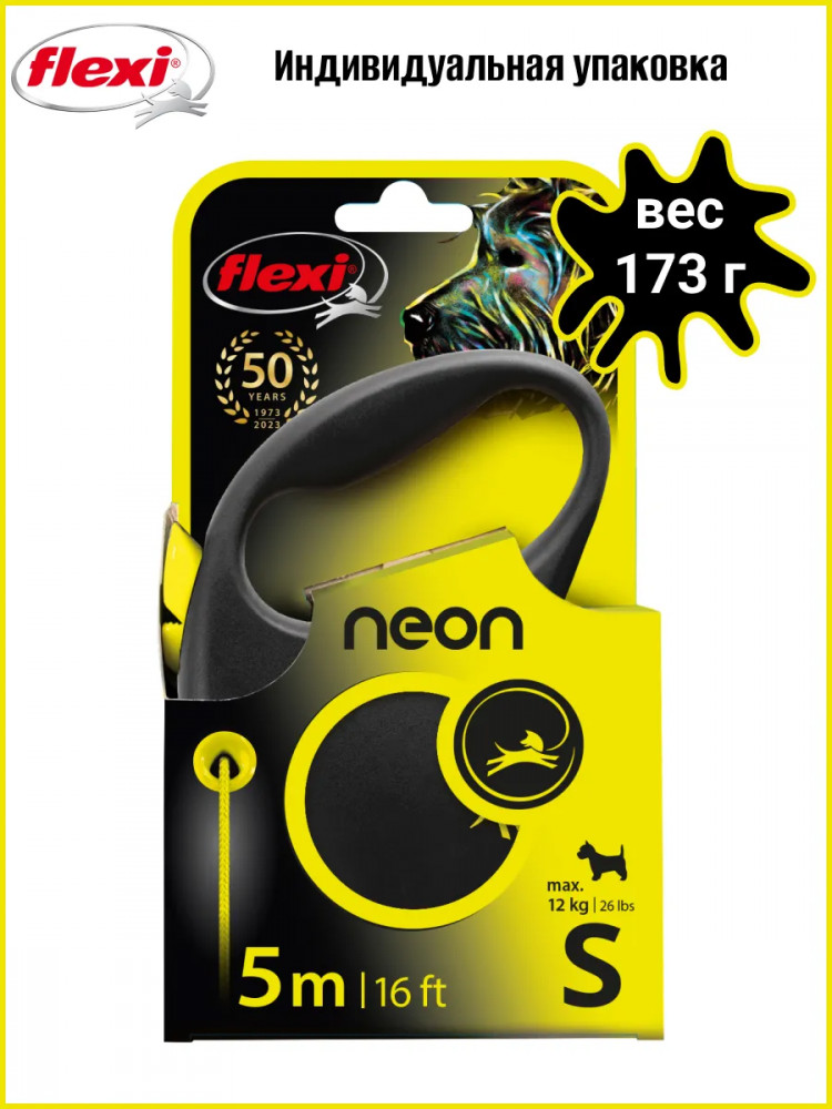 Поводок-рулетка Flexi Fun в чёрном корпусе с ярким тросом. Длина поводка 5 метров. Проводок для небольших собак и кошек, эксклюзивная лимитированная модель.