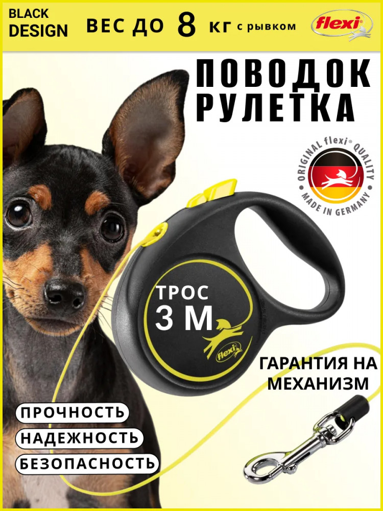• меньше пачкаются: трос рулетки натянут и не провисает, как у обычного поводка, при этом собака может гулять на расстоянии нескольких метров — трос остаётся чистым;