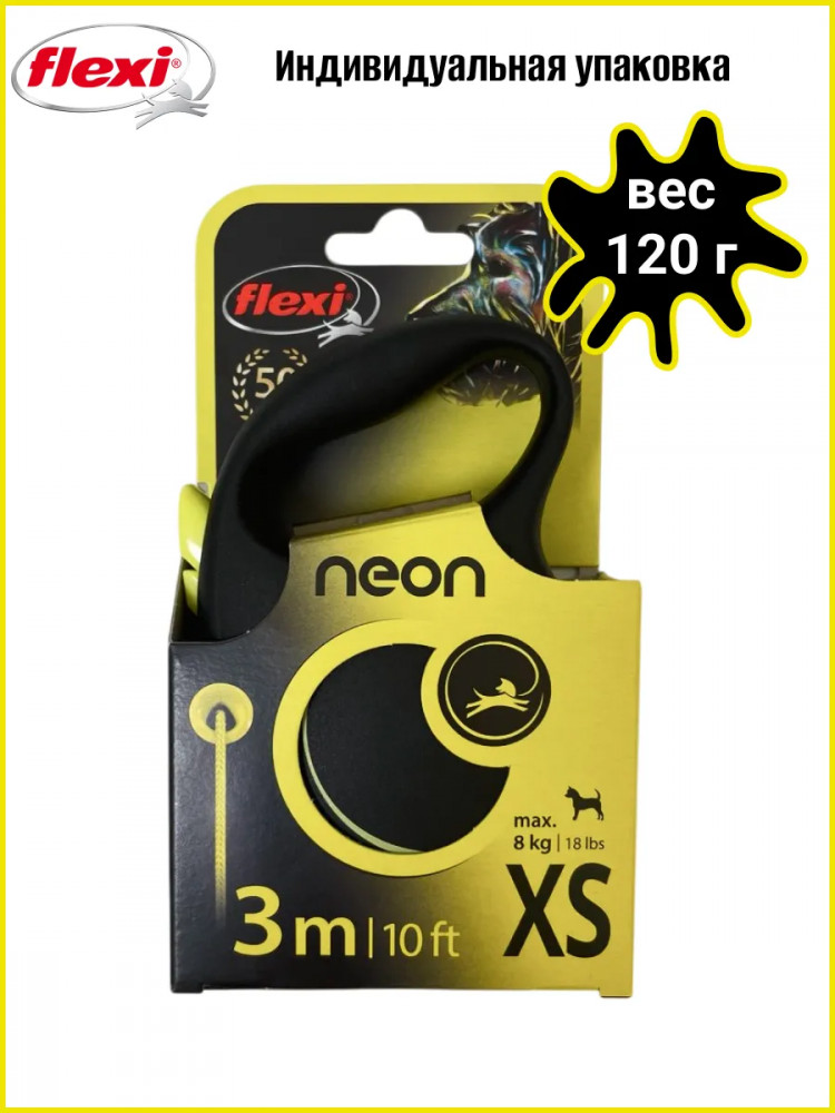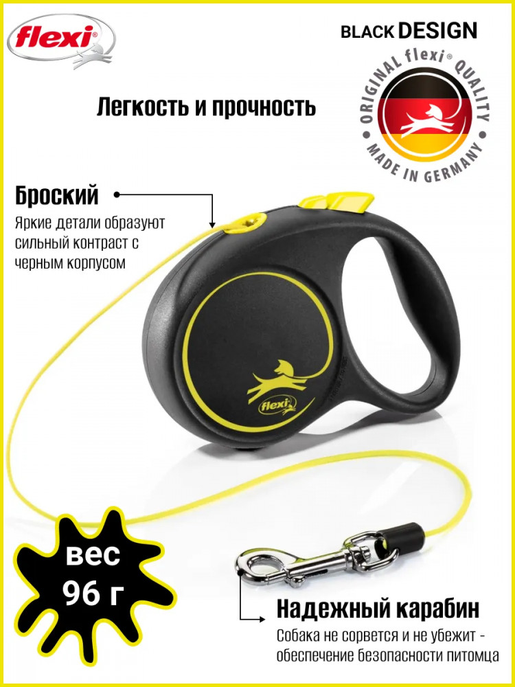 Поводок-рулетка Flexi Fun в чёрном корпусе с ярким тросом. Длина поводка 5 метров. Проводок для небольших собак и кошек, эксклюзивная лимитированная модель.