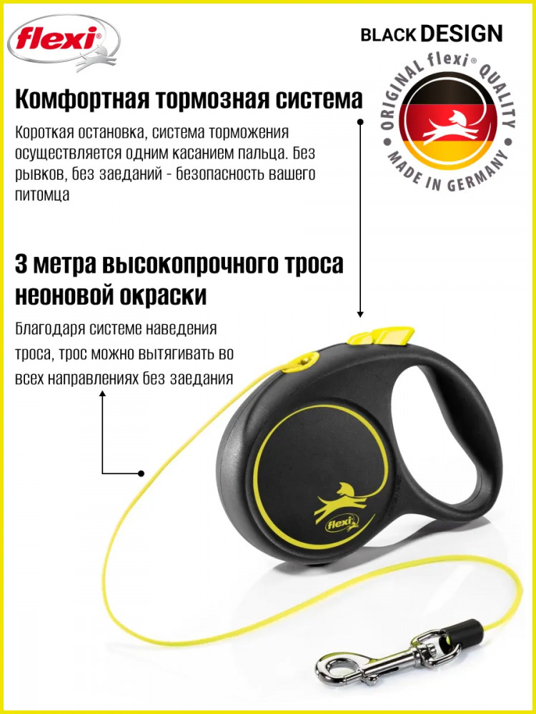 Перед первым применением поводка, пожалуйста, ознакомьтесь с прилагаемой инструкцией. Длина рукоятки — 6 см. Вес 96 гр. Ширина троса — 0.2 см. На данную модель нельзя установить мультибокс. Рулетка очень легка в применении, принесет вам еще большую радость от моментов, проведенных с любимцем. Рулетка позволяют вашей собаке наслаждаться гораздо большей свободой.