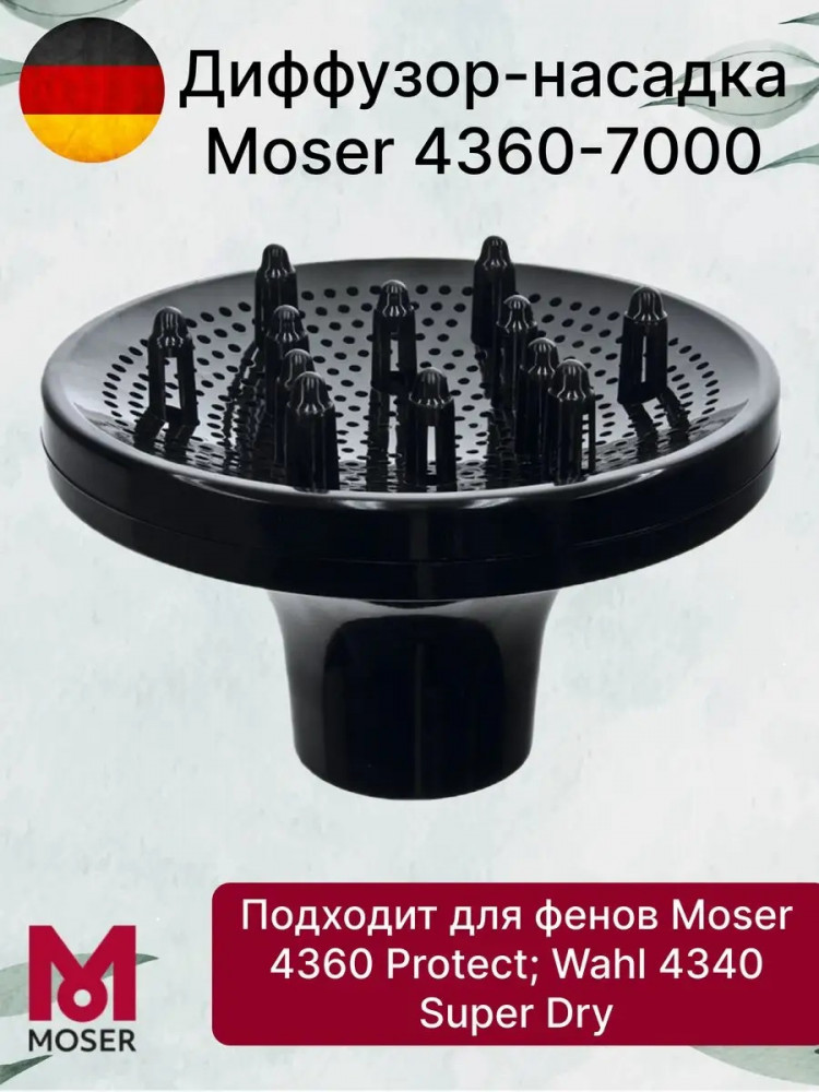 Насадку Moser 4360-7000 Styling Diffuser 4360-7000 устанавливают на фены для сушки волос. Диффузор сделан из черного термостойкого, устойчивого к нагреву пластика. Диффузор применяют для увеличения объема волос, оформления локонов или глубокой сушки. Диффузор — это круглая большая насадка, которая предназначена для сушки и укладки волос. Элемент имеет небольшие пластиковые зубчики. Насадка сделана из черного устойчивого к высоким температурам пластика.