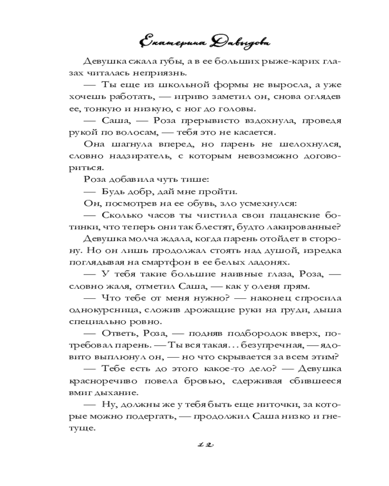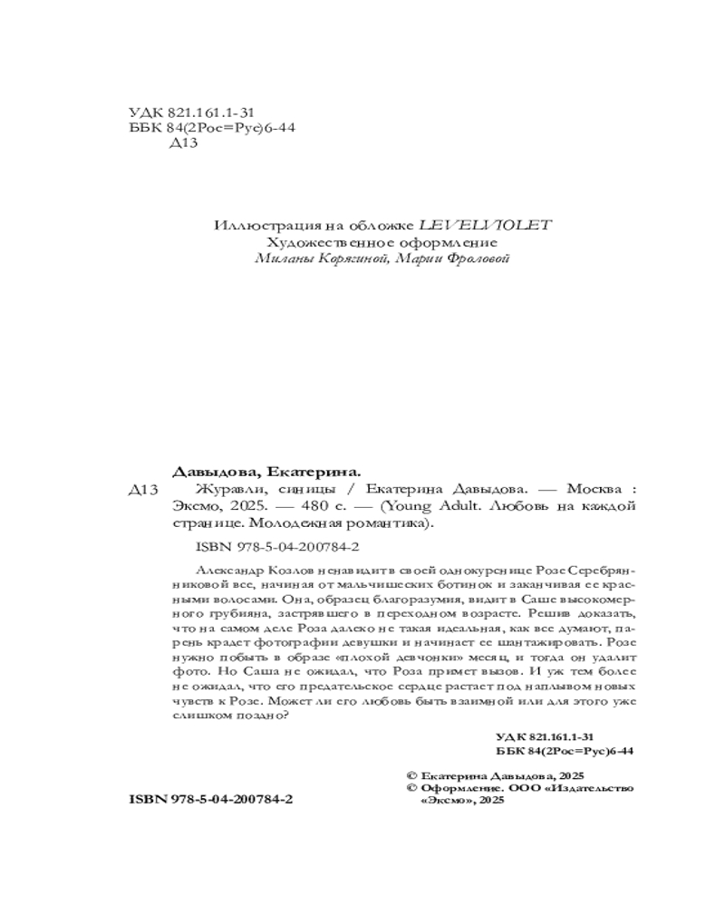 💳 Оплатить за товар можно при получении 🇰🇿 Есть бесплатная доставка по Казахстану от 1 дня 🎁 Копите бонусы с каждой покупки Серия: Young Adult. Любовь на каждой странице. Молодежная романтика Российская романтическая новинка с тропами «от ненависти до любви», «любовный многоугольник», «плохой парень, хорошая девушка»! Своенравный студент Саша ненавидит безупречную однокурсницу Розу и, украв ее личные фотографии с телефона, шантажирует девушку ими. Но, думая ее проучить, он неожиданно сам влюбляется в Розу. Могут ли его чувства быть взаимны или для этого уже слишком поздно? Для поклонников романов Ники Сью и Эмилии Грин! |