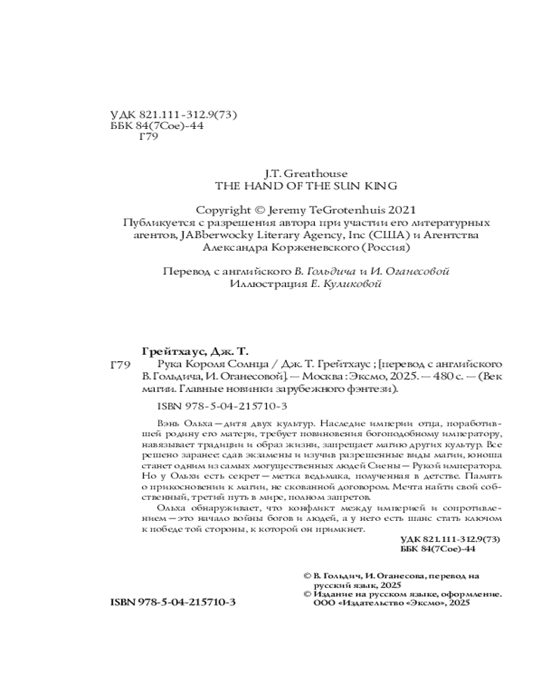 💳 Оплатить за товар можно при получении 🇰🇿 Есть бесплатная доставка по Казахстану от 1 дня 🎁 Копите бонусы с каждой покупки Серия: Fanzon. Век магии. Главные новинки зарубежного фэнтези Вэнь Ольха — дитя двух миров. Отцовская линия из поколения в поколение хранит гордую преданность и служение богоподобному сиенскому императору. Предполагается, что и Ольха будет следовать этой традиции, сдав императорские экзамены и изучив разрешенные виды магии. А если он будет служить с честью, укрепив славу своей семьи, — занять самый могущественный пост в Сиене и называться Рукой императора. Но от матери он унаследовал неповиновение империи, историю диких богов и магии, тех, кого не могут контролировать имперские колдуны. Стоя перед главным выбором своей жизни, Ольха понимает: конфликт между империей и сопротивлением — только начало войны, которая охватит небо и землю, богов и людей. И что он способен склонить чашу весов к окончательной победе той стороны, которая сможет принять его как своего... |