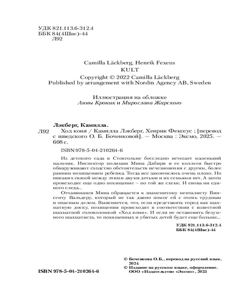 Ход коняКамилла Лэкберг, Хенрик Фексеус -20% +136