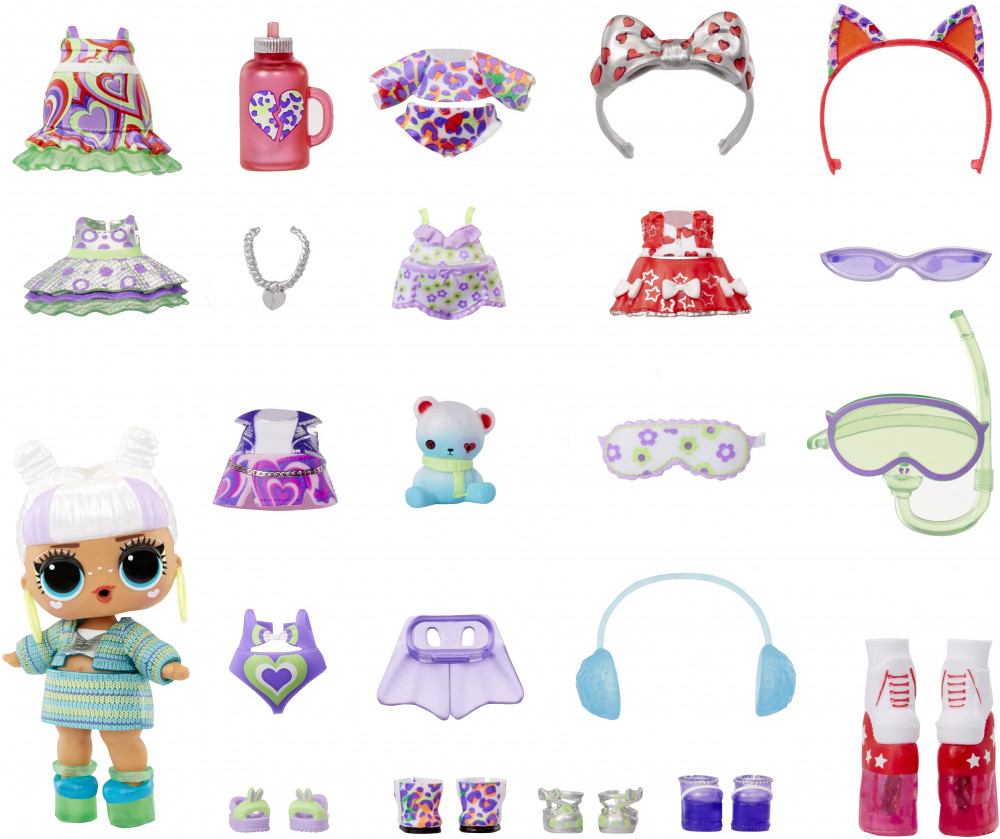 Миксуйте модные аксессуары и создавайте новые стильные сочетания для вашей мини-куклы! В игровой набор Лол сюрпрайз Адвент календарь входят мини-кукла, 8 предметов одежды, 6 пар обуви, бутылочка, 9 аксессуаров. Игровой набор изготовлен из полимерных материалов. Товар сертифицирован и безопасен для детского использования. Упаковка: закрытая коробка 36×6×30,5 см.