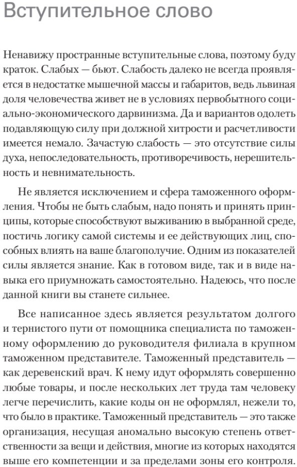 💳 Оплатить за товар можно при получении 🇰🇿 Есть бесплатная доставка по Казахстану от 1 дня 🎁 Копите бонусы с каждой покупки Книга не сулит чудес, но ставит вполне амбициозную цель не только понять логику таможни, но и научиться неукоснительно соблюдать взаимоисключающие параграфы свода требований государственных органов в самых разных обстоятельствах. Материалы собраны и изложены действующим специалистом крупного таможенного представителя, лично прошедшего непростой путь от помощника специалиста по таможенному оформлению до руководителя филиала. Автор рассказывает об особенностях работы с таможенными органам и поднимает такие важные темы как правовое регулирование таможенных вопросов и принципы таможенного контроля, классификация товаров и тарифное регулирование, сертификация и декларирование соответствия, методы определения таможенной стоимости, таможенный осмотр и досмотр, а также многие другие вопросы, которые ежедневно решают таможенные представители и в которых необходимо разбираться всем, кто планирует развивать собственный бизнес. Издание адресовано всем, кто планирует ступить на зыбкую почву таможенного декларирования: студентам по специальности «Таможенное дело», управленцам, в чей круг обязанностей входит общение с таможней и минимизация последствий такового общения, и предпринимателям, дерзнувшим выдержать бой Давида с таможенным Голиафом. |