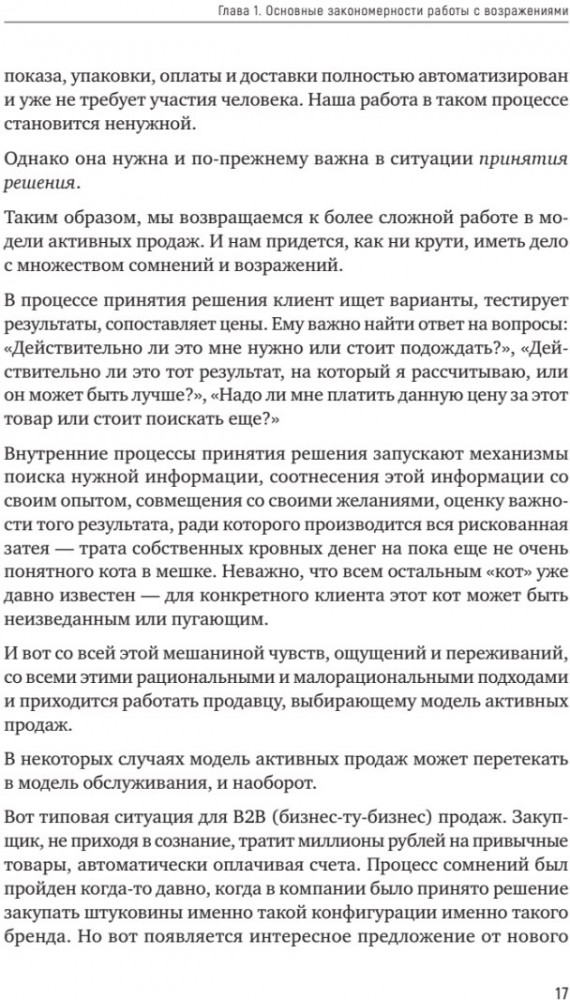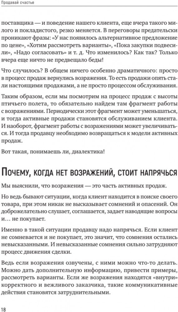 В книге собраны методы, технологии и приемы, которые помогают в работе с возражениями продавать счастье, ценность и результат несмотря на то, что клиент говорит: «мне не надо», «у меня