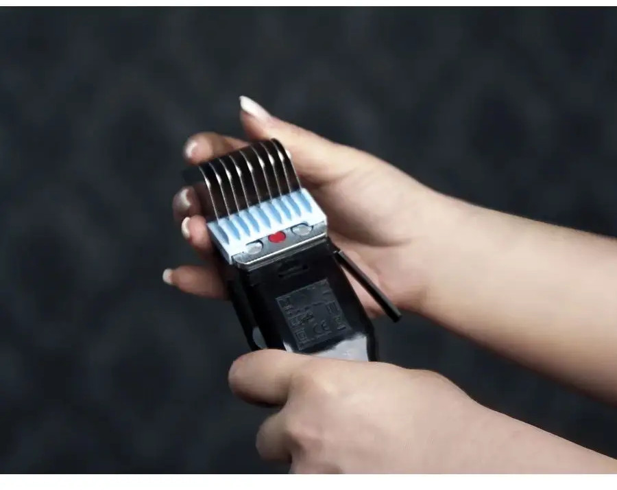 В комплекте с машинкой идут 4 насадки для изменения длины стрижки. Насадки крепятся на нож механизмом Slide On, надвигаются на нож, надежно сидят, не соскакивая во время работы.