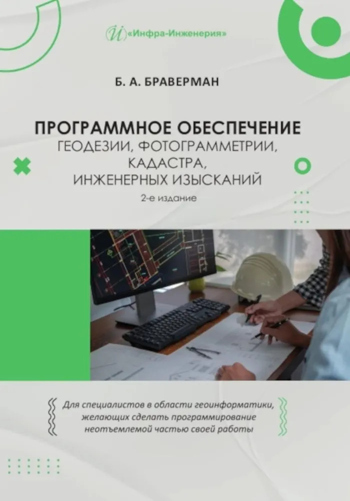 Программное обеспечение геодезии, фотограмметрии, кадастра, инженерных изысканийВ данный момент этот товар отсутствует в продаже. Возможно, у нас найдется аналогичный или похожий товар здесь. Рассмотрены возможности использования элементов программирования на языке С# в среде Microsoft Visual Studio для решения разнообразных задач геоматики. Показана связь процессов кадастра и географических информационных систем. Предложены функции для решения задач кадастра и инженерных изысканий на основе данных геодезии и аэротриангуляции. Программно реализовано цифровое моделирование местности, в котором геодезические и геологические изыскания рассматриваются вместе. Создана модель учета перемещаемых земляных масс. Представлено большое количество готовых к использованию функций с исходными текстами и возможностью адаптировать их к различным условиям. Для студентов инженерно-геодезических и кадастровых направлений, а также специалистов в области геоматики, решивших улучшить качество и скорость своей работы с помощью внедрения элементов программирования. |
