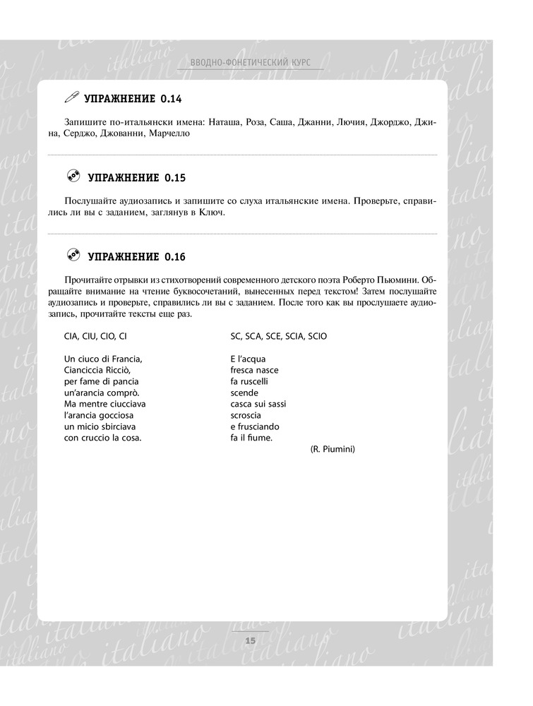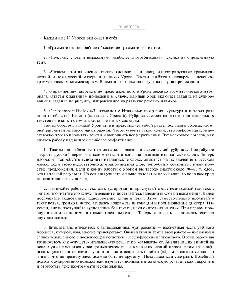 Отличный самоучитель. Дочь показала книгу преподавателю-итальянцу, он посмотрел и похвалил учебник. Дополнительные упражнения он теперь дает по этой книге. Покупкой очень довольны! Спасибо магазину!