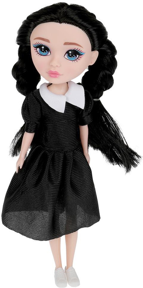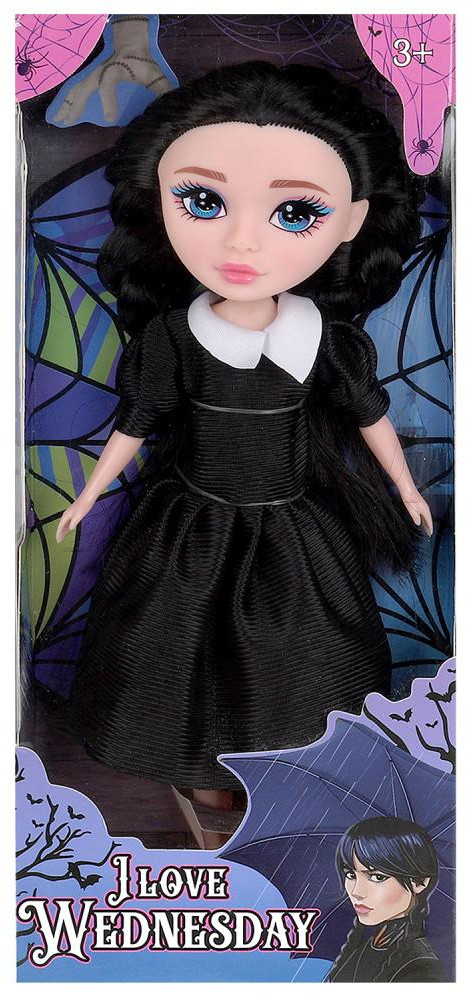 Likee Girl Кукла «I love Wednesday»В данный момент этот товар отсутствует в продаже. Возможно, у нас найдется аналогичный или похожий товар здесь. Очаровательная куколка одета в стильное платье чёрного цвета с белым воротничком, на ногах — белые удобные кеды. Одежду и обувь легко снять и надеть. С такой оригинальной куклой девочке будет интересно и весело играть. У куклы длинные красивые волосы, которые хозяйка куклы сможет заплетать в разные причёски. Детально проработанный дизайн игрушки вдохновит девочку на множество увлекательных игровых сюжетов. Руки и ноги поднимаются и опускаются. Кукла станет прекрасным подарком для любительницы культового сериала «Wednesday». |