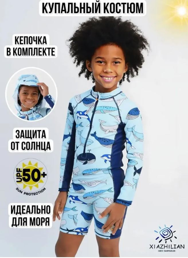 Купальник закрытый детский с длинными рукавами идет в комплекте с солнцезащитной панамой с козырьком или шапочкой для плавания, которые защитят вашего ребенка от солнца! Костюм слитный для купания очень удобно одевать и снимать, благодаря молнии, которая никак не мешает ребенку. Спортивный купальник с шортами и рукавами не сковывает движений. Возьмите купальный комплект детский с собой на море и забудьте о солнцезащитных кремах!