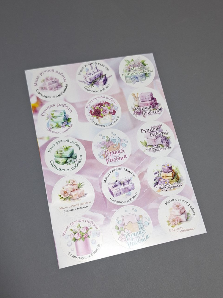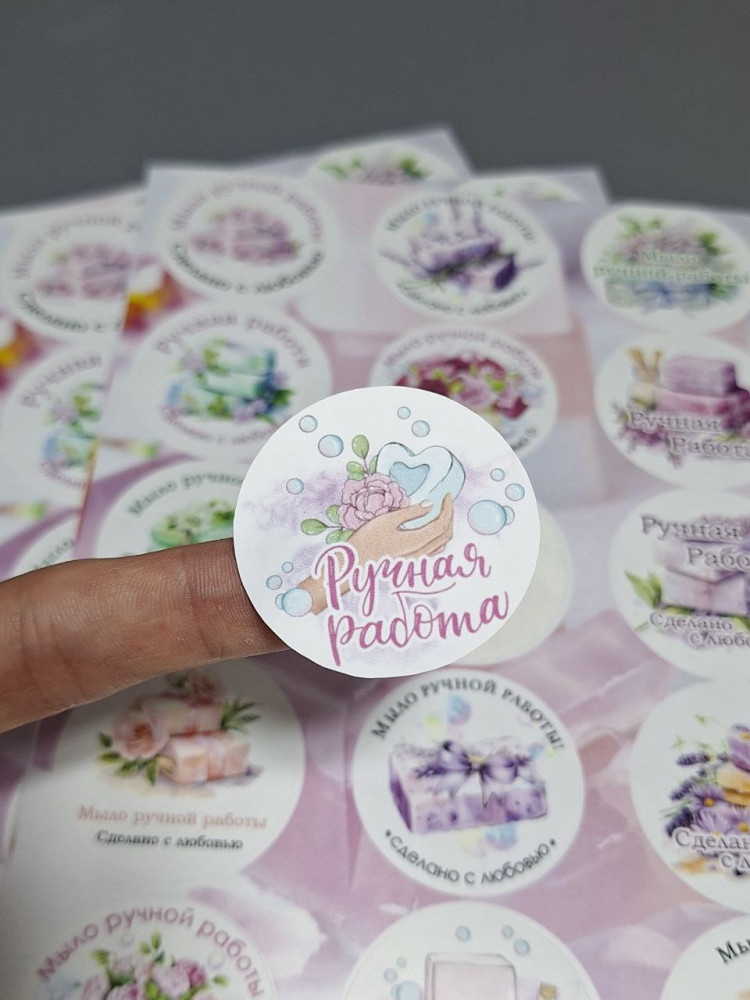 💳 Оплатить за товар можно при получении 🇰🇿 Есть бесплатная доставка по Казахстану от 1 дня 🎁 Копите бонусы с каждой покупки Набор декоративных круглых наклеек для оформления мыла ручной работы. На листе представлены разнообразные акварельные дизайны с надписями «Ручная работа», «Мыло ручной работы», «Сделано с любовью». Подходят для упаковки, украшения баночек, коробочек, бирочек, а также для крафтовых работ. |