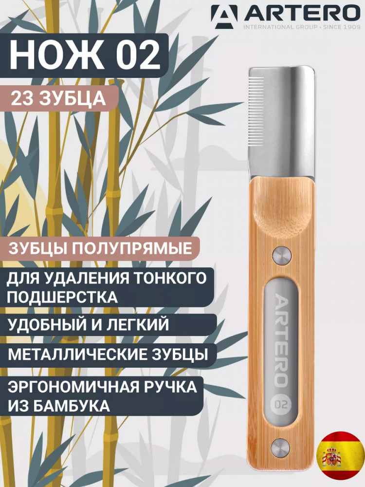 Нож для тримминга Артеро предназначен для профессионального ухода за шерстью домашних животных и используется для работы с жесткой и густой шерстью, а также плотным подшерстком. Он идеально подходит для удаления старой шерсти, создания четких линий и контуров, а также для придания шерсти здорового и ухоженного вида. Нож Artero изготовлен из высококачественной стали, что обеспечивает его прочность и долговечность. Лезвие ножа остро заточено и имеет специальное покрытие, которое предотвращает налипание шерсти и облегчает процесс стрижки. Нож обладает удобной рукояткой, которая обеспечивает надежный захват и комфорт при работе.