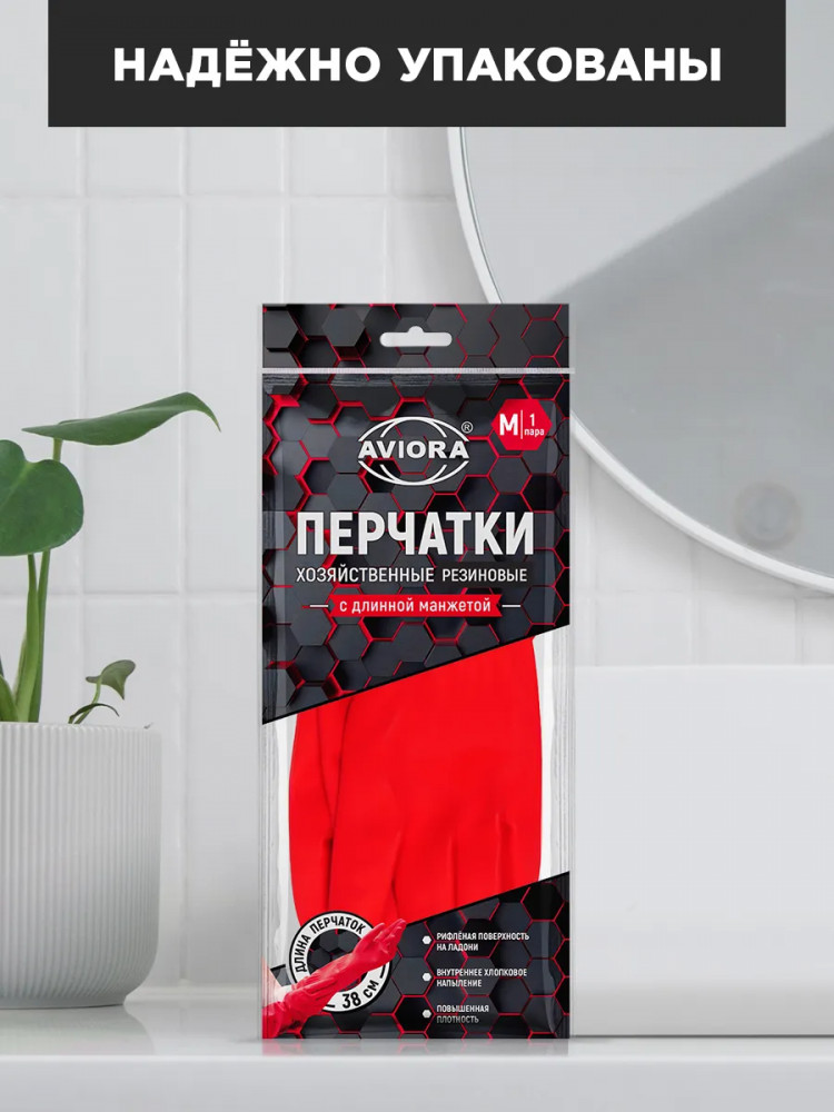 Aviora Перчатки хозяйственные резиновые с удлиненной манжетой