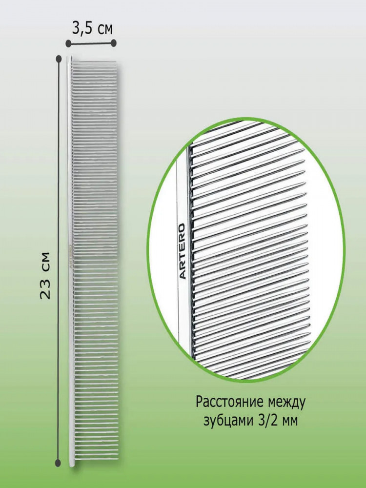 Artero Расческа для собак и кошек комбинированная для дополнительного объемаВ данный момент этот товар отсутствует в продаже. Возможно, у нас найдется аналогичный или похожий товар здесь. Серия: Nature Collection Гребень идеально подходит для стрижки собак всех пород со средней густотой шерсти. Металлическая расческа с хромированным покрытием для предотвращения появления ржавчины и обеспечения большего скольжения во время использования, избежать трения и ненужной ломкости волос. Конический зуб предназначен для глубокого проникновения в густую шерсть, обеспечивая больший объем, что делает его идеальным для укладки во время стрижки, выставки и соревнований. |