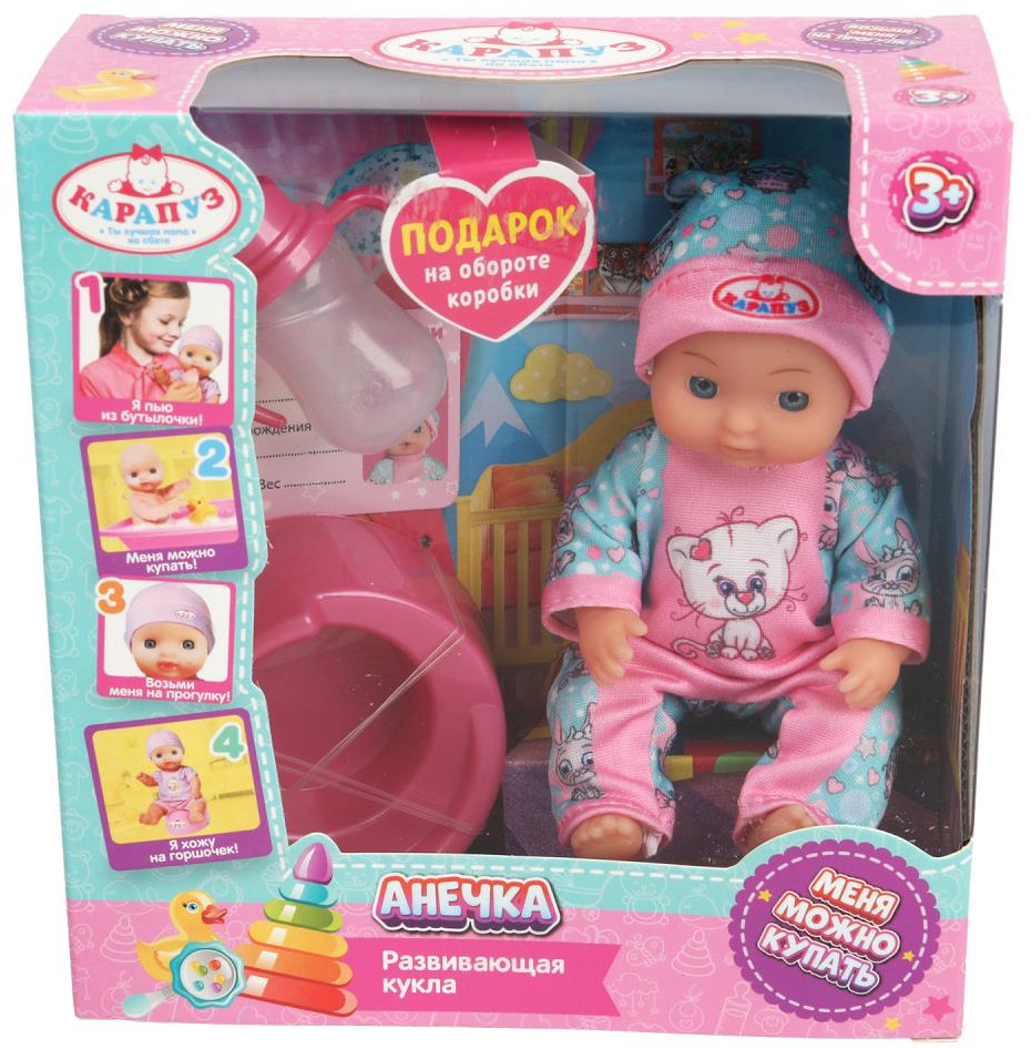 Карапуз Пупс развивающий «Анечка»В данный момент этот товар отсутствует в продаже. Возможно, у нас найдется аналогичный или похожий товар здесь. Развивающий пупс «Анечка» ТМ «Карапуз» станет прекрасным подарком для маленькой принцессы. Этот милый пупс с детально проработанным личиком обязательно понравится вашей малышке. Анечка одета в красочный комбинезон в розово-бирюзовой цветовой гамме с милым принтом. На голове — шапочка в тон. Одежда легко снимается и надевается. Очаровательный пупс непременно вдохновит девочку на множество интересных сюжетов для игр, тем более его можно купать в воде, кормить и сажать на горшок. Благодаря компактному размеру игрушку можно повсюду брать с собой. Игра с пупсом ТМ «Карапуз» учит ребёнка заботиться об окружающих, быть ответственным и внимательным, а также развивает: воображение, память, социально-коммуникативные навыки и моторику. |
