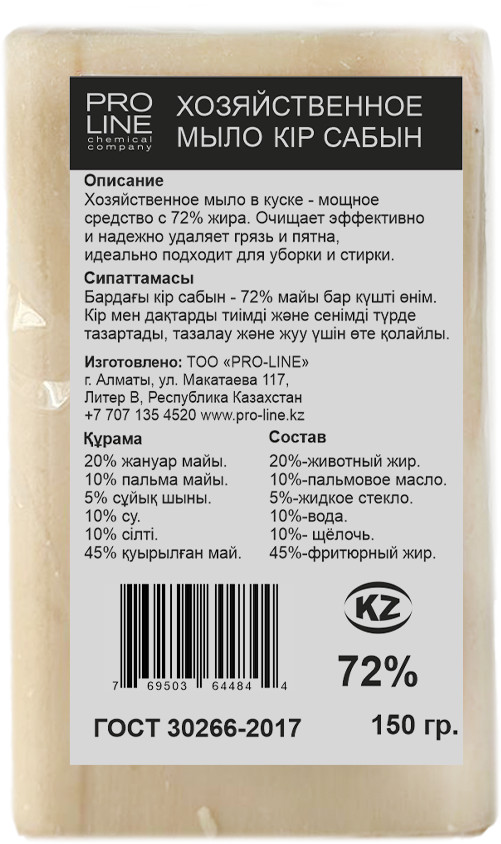 Мыло хозяйственное кусковое 72% | Pro-Line