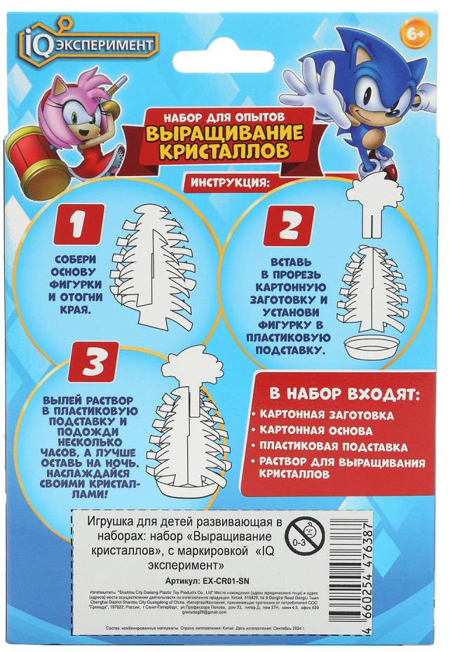 IQ Эксперимент Набор для опытов «Выращивание кристаллов»В данный момент этот товар отсутствует в продаже. Возможно, у нас найдется аналогичный или похожий товар здесь. Набор для опытов «Выращивание кристаллов» ТМ «IQ Эксперимент» непременно понравится юному любознайке. Набор для выращивания кристаллов — это увлекательный способ познакомиться с основами химии и физики, наблюдая за удивительным процессом кристаллизации. Из входящих в состав набора предметов нужно собрать фигурку и установить её в пластиковую подставку. Останется лишь вылить в подставку специальный раствор и подождать несколько часов: конструкция начнёт обрастать кристалликами, а через 24 часа закристаллизуется по максимуму, превратившись в волшебную инсталляцию в виде фигурки очаровательной принцессы в пышном платье. |