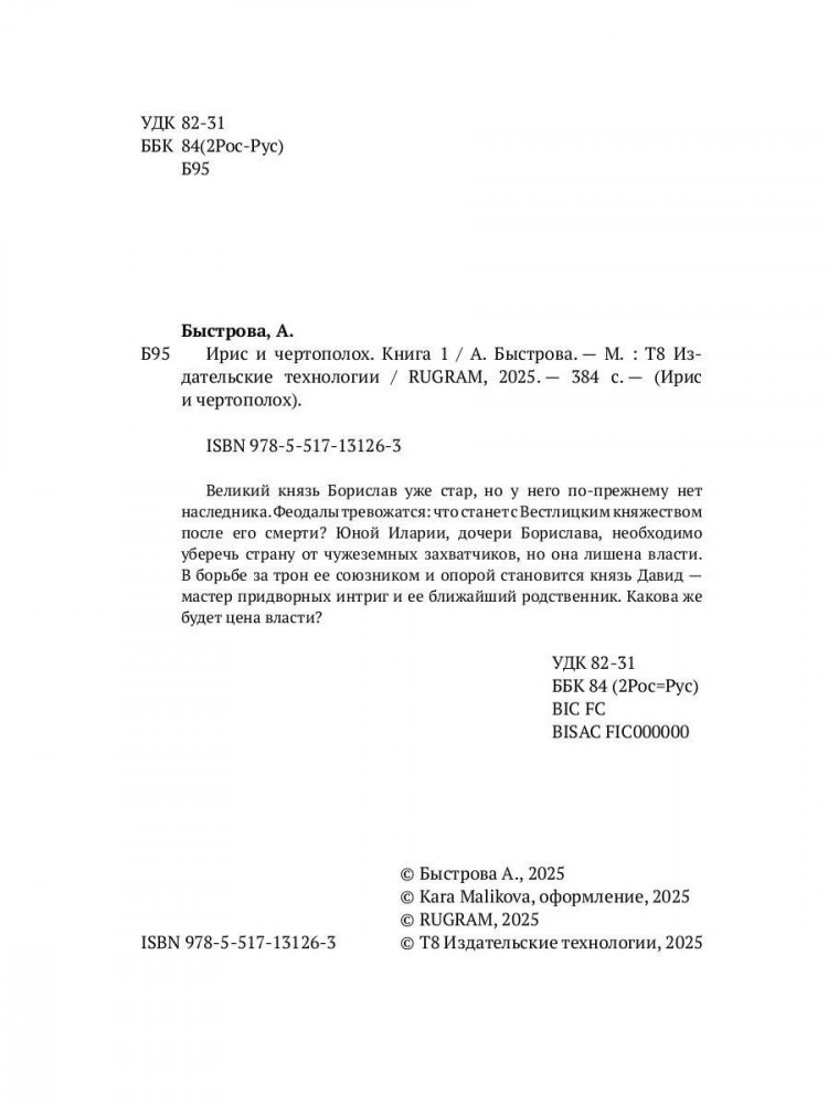 Серия: Ирис и чертополох Великий князь Борислав уже стар, но у него по-прежнему нет наследника. Феодалы тревожатся: что станет с Вестлицким княжеством после его смерти? Юной Иларии, дочери Борислава, необходимо уберечь страну от чужеземных захватчиков, но она лишена власти. В борьбе за трон ее союзником и опорой становится князь Давид — мастер придворных интриг и ее ближайший родственник. Какова же будет цена власти? |